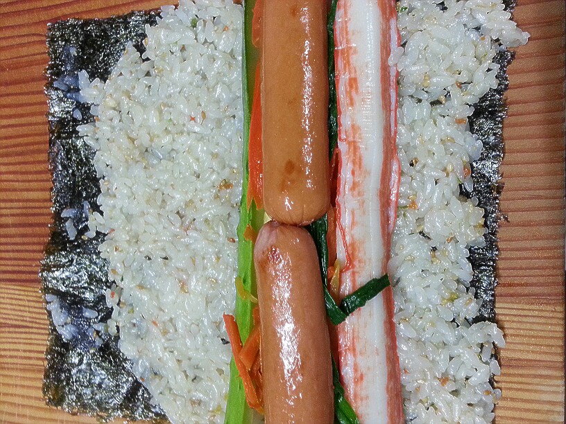 에긍 뭘 모르넹ㅎㅎ재료두 큼직하게~넘 맛있어보여~언뉘는 이런 스퇄 김밥 무지 조와하거등~#♡