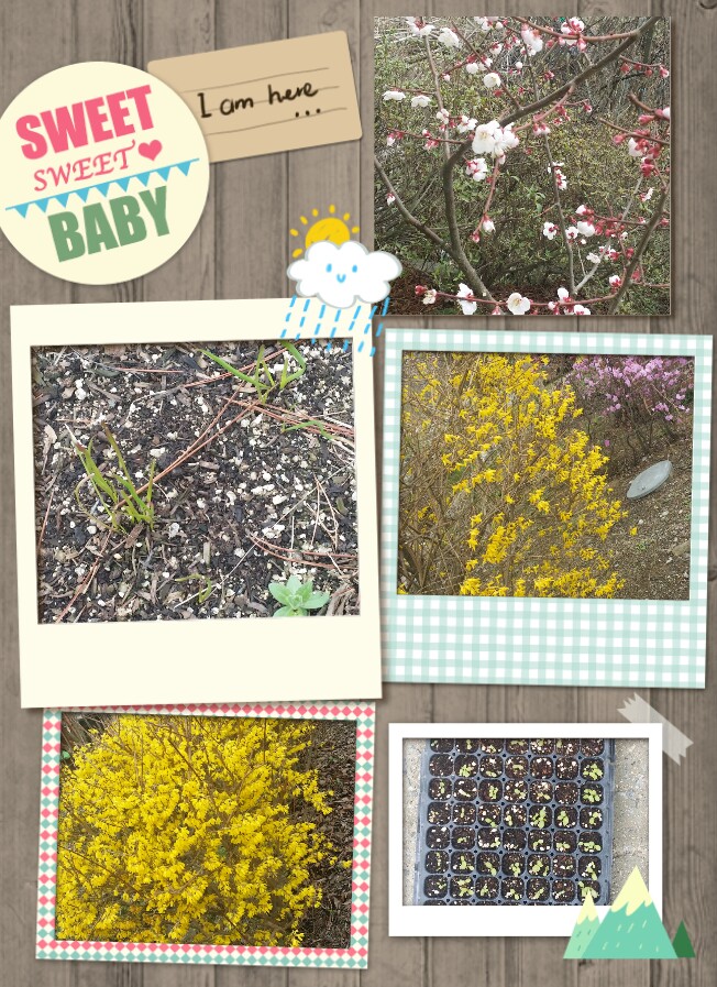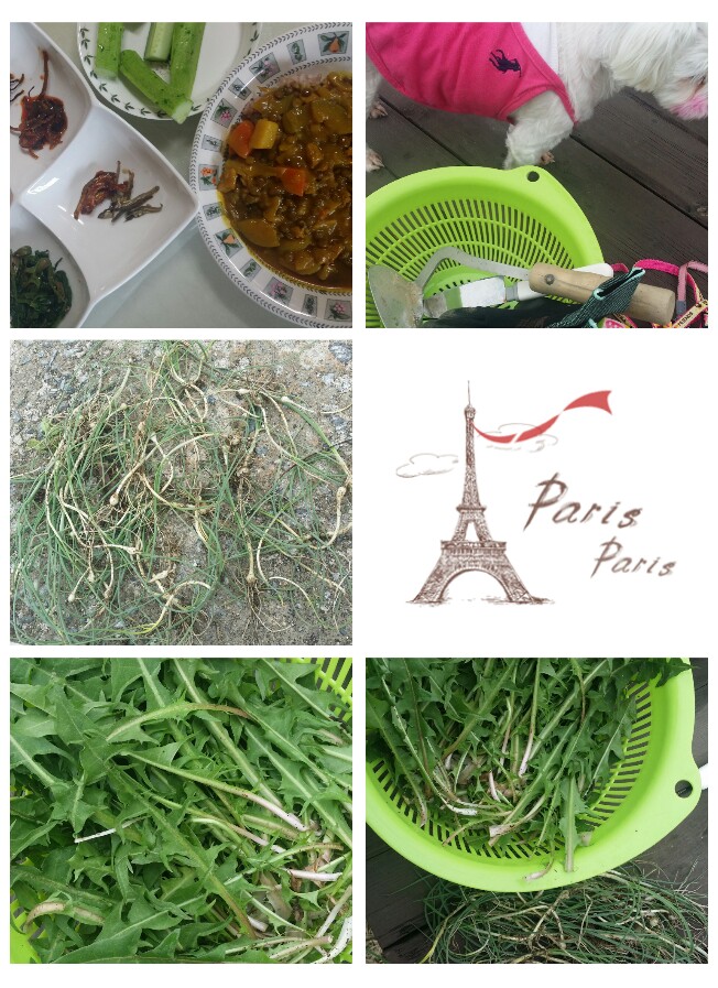 울집에 마당에도 인제 꽃이피고 부추도 올라와요