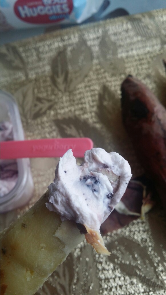 요플레 메이커기 팔때 고구마에 크림치즈 발라먹더라구요 따라해봤죠