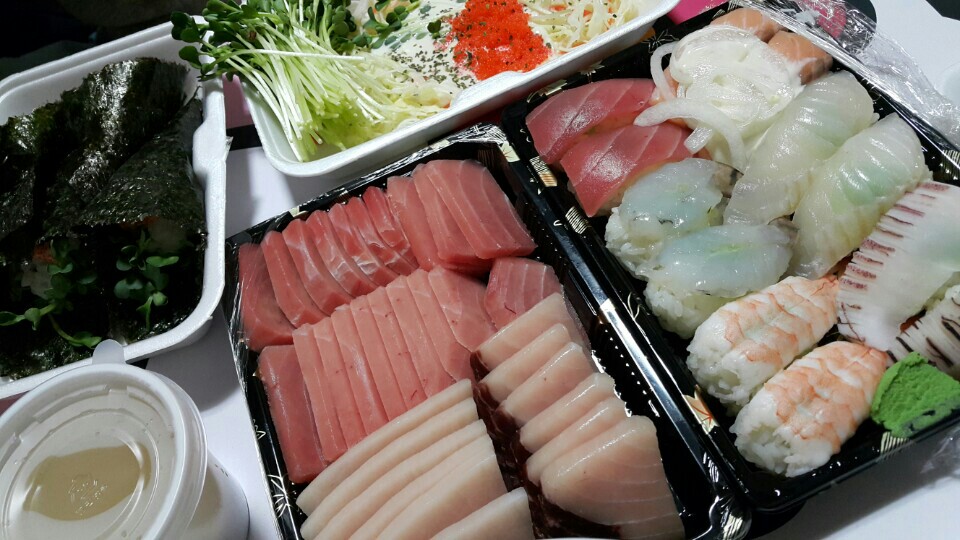 어제 티비보다가 급 지른 참치회랑 초밥이에용