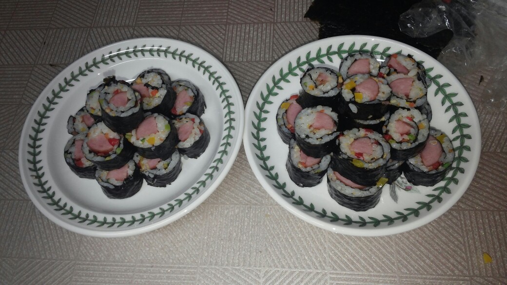애들은 야채볶음밥해서 소세지 넣은 김밥