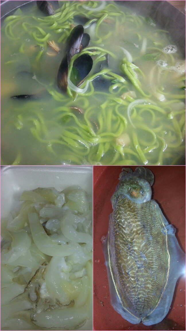 오라방 안녕하소 ㅋ~~칼국시 색감도 이쁘고 홍합들가서 션 하겠다. 갑오징어 식감완전 좋은뎅~ 쫀든쫀득 요새 넘 좋은거만 드시네~ 배불리 많이 드삼!