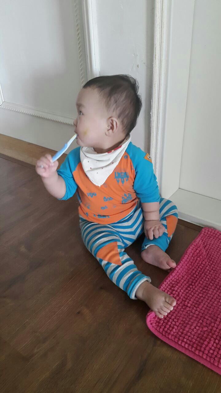 아침부터 이유식 만들고~솔이 양치하라고 했더니 좀하다가 눈치보고 욕실로 슬금슬금ㅡ.,ㅡ 옷다젖어서 갈아 입혀놓고ㅠㅠ 다시 이유식하러~조용해서 보니까 저러고 있네요ㅋㅋ