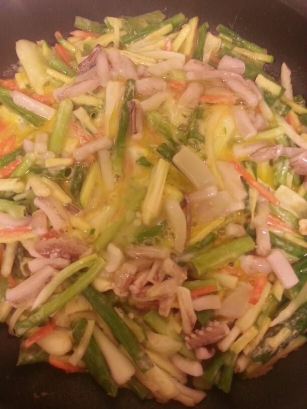 손가락 마디만큼 남은 자투리 채소로 오징어도 눈꼽만치~ 한장 부처서 냠냠!