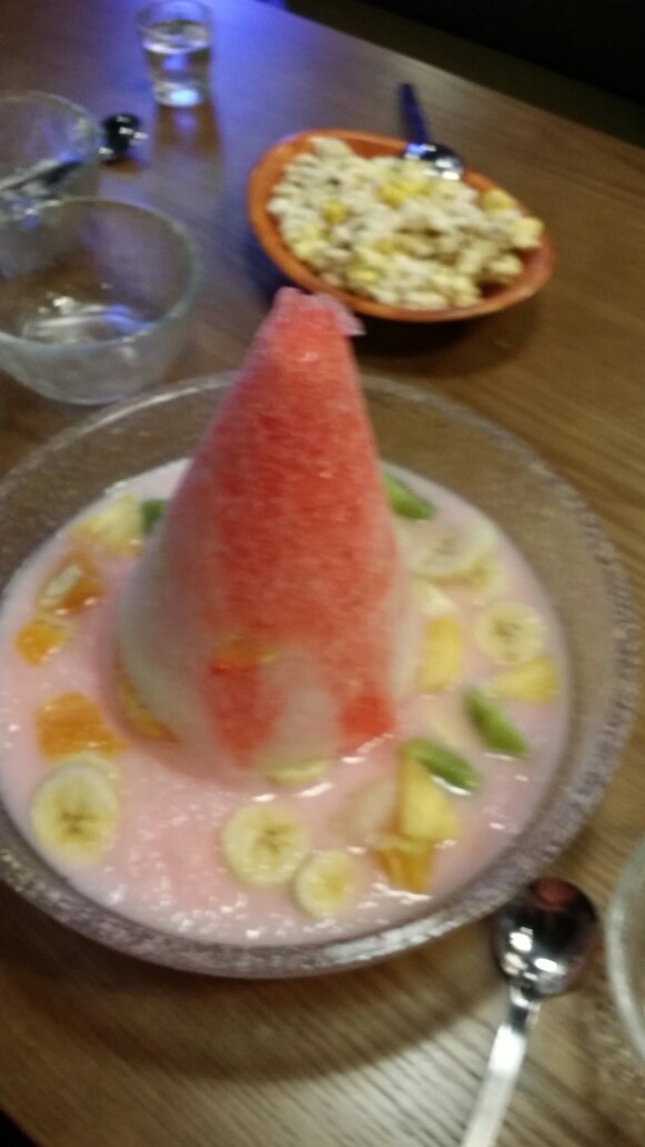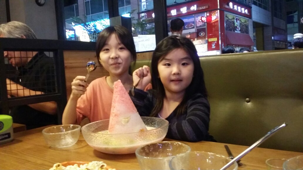 커다란 과일 빙수 우리 딸들 맛있게 먹는 것 같네요