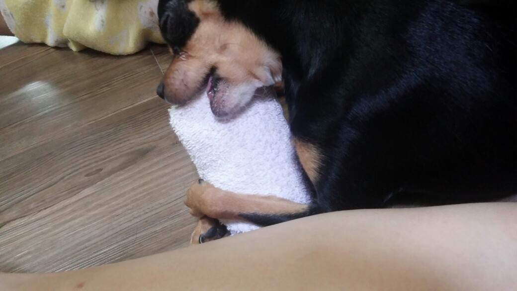 심지어 세벽에 이불에 오줌도싸구 남자친구 배가 편한지 자꾸 기어올라가서 누워잇어용
