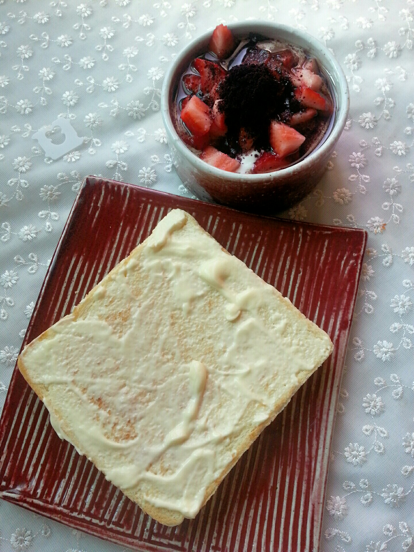 요거트에 크림치즈바른 식빵 넘 맛있어보여