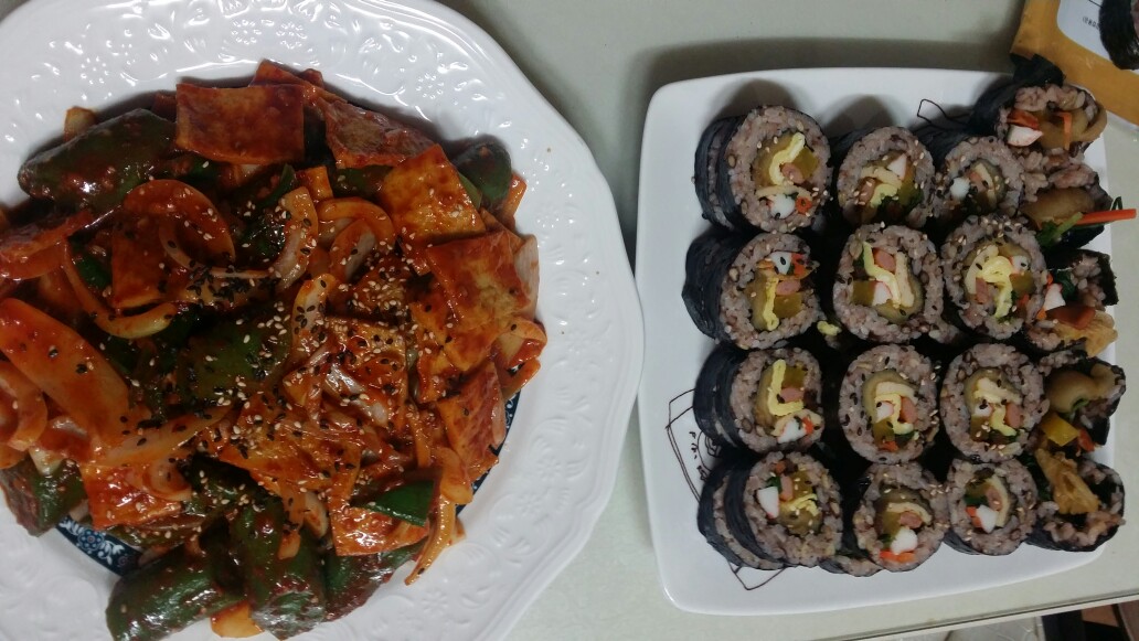 오늘은 분식으로 저녁 김밥과쑥떡 떡볶이ㅎ