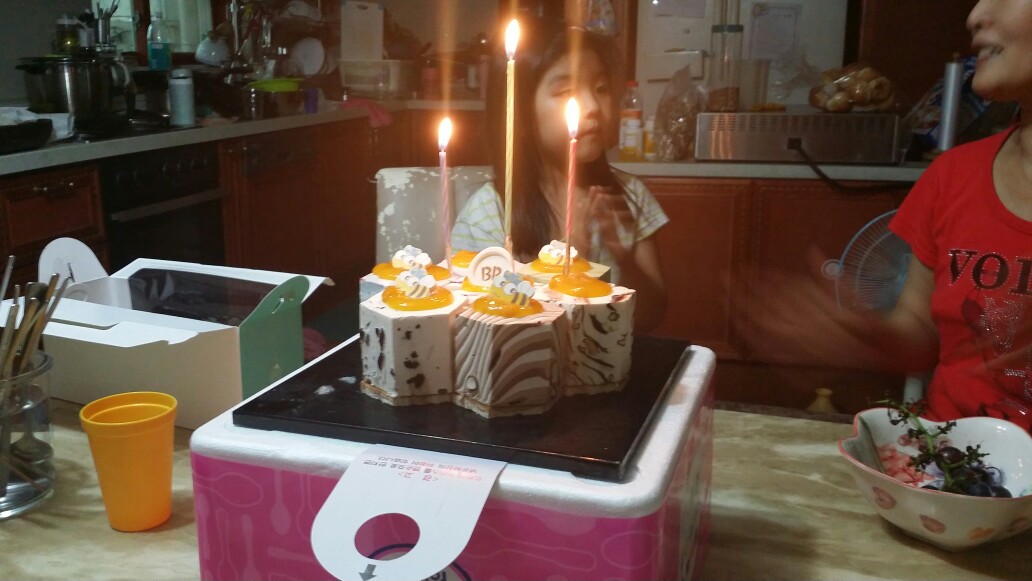 오늘이 큰딸 생일이어서 베스킨라빈스에서 아이스크림 케익먹었어요