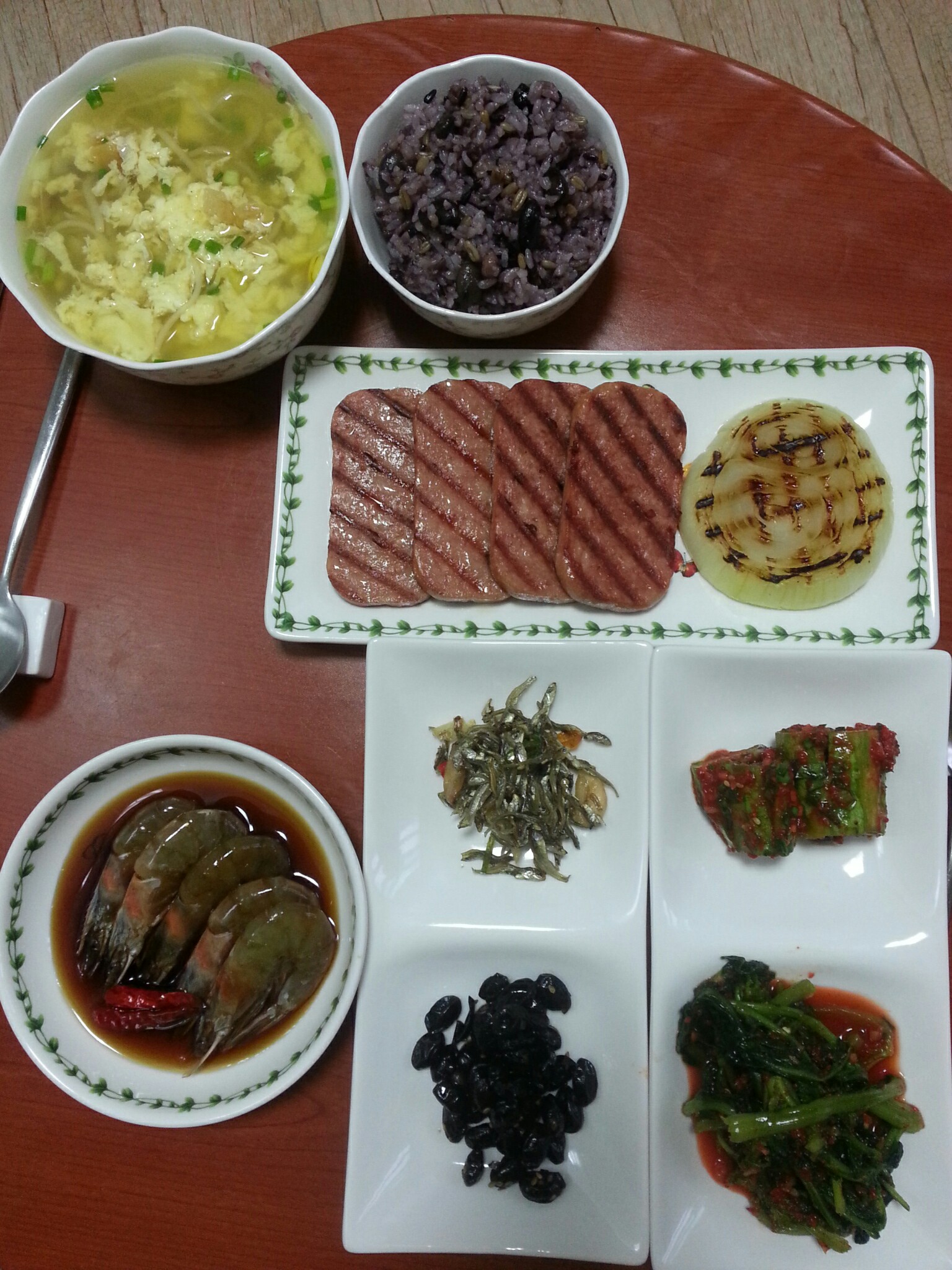 북어국 끓여서 새우장이랑 있는 반찬이랑 해서