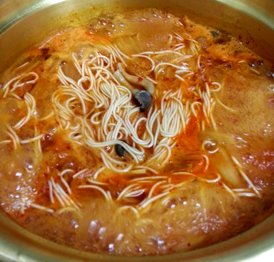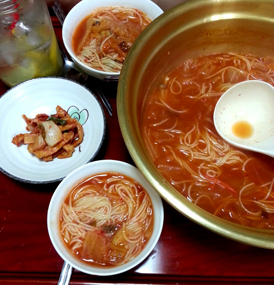 저녁에 김치국수먹어용 얼큰하니맛나네용