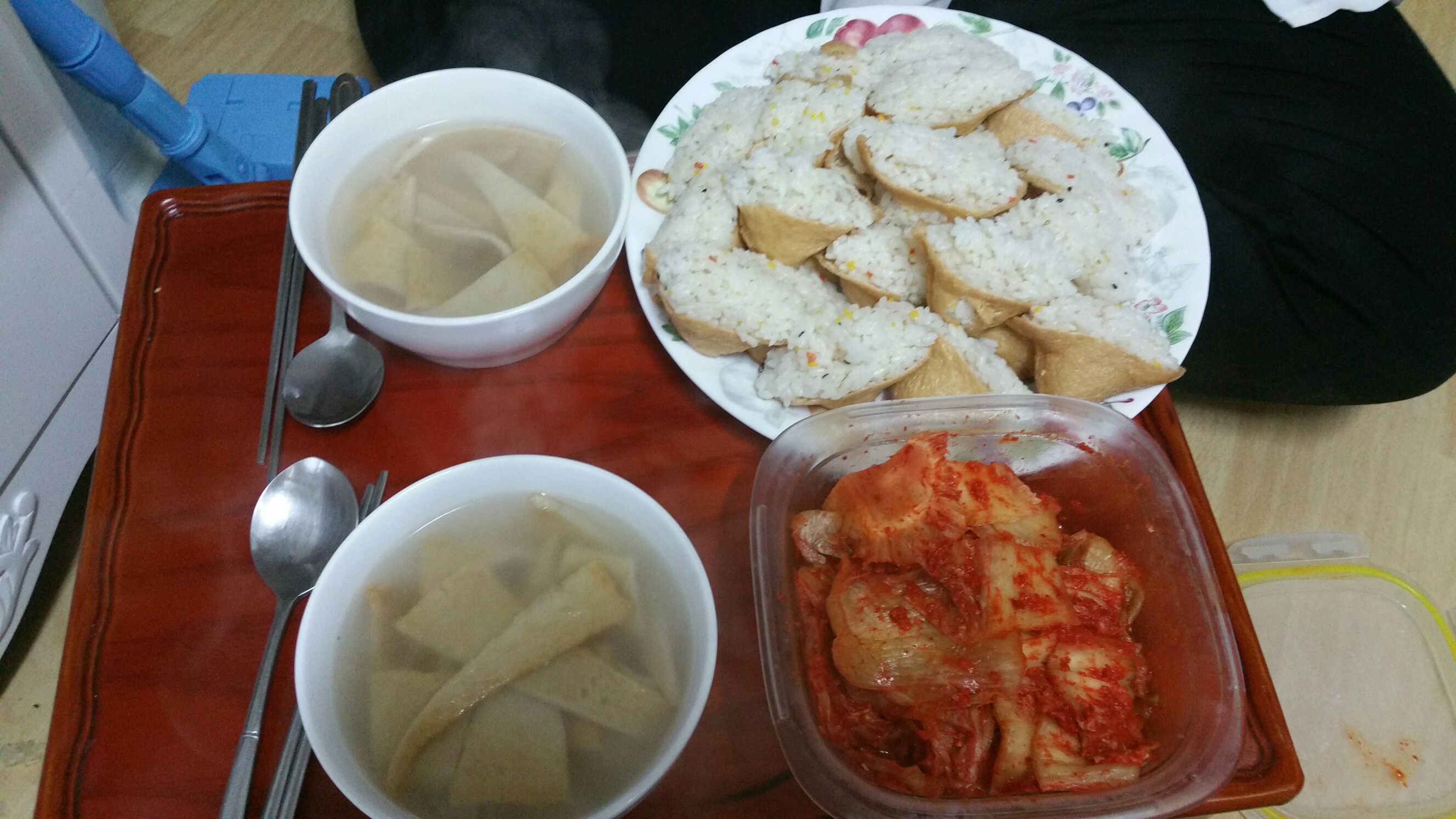 속이 푸짐한 유부초밥이네 ㅎ 오뎅탕에 땡초 넣엇지