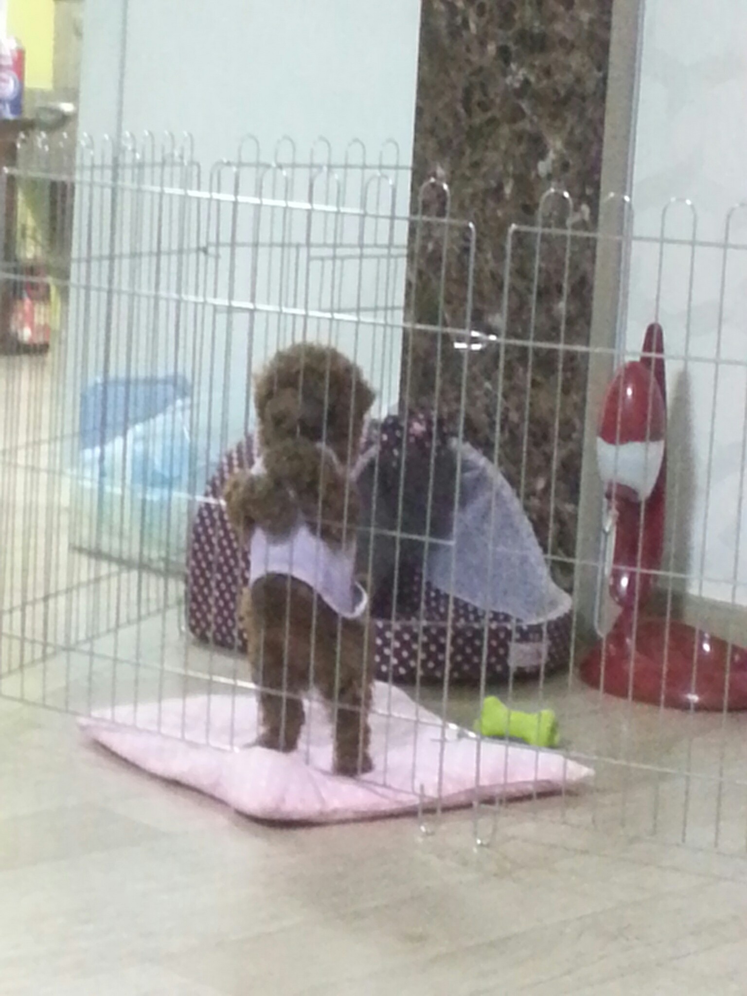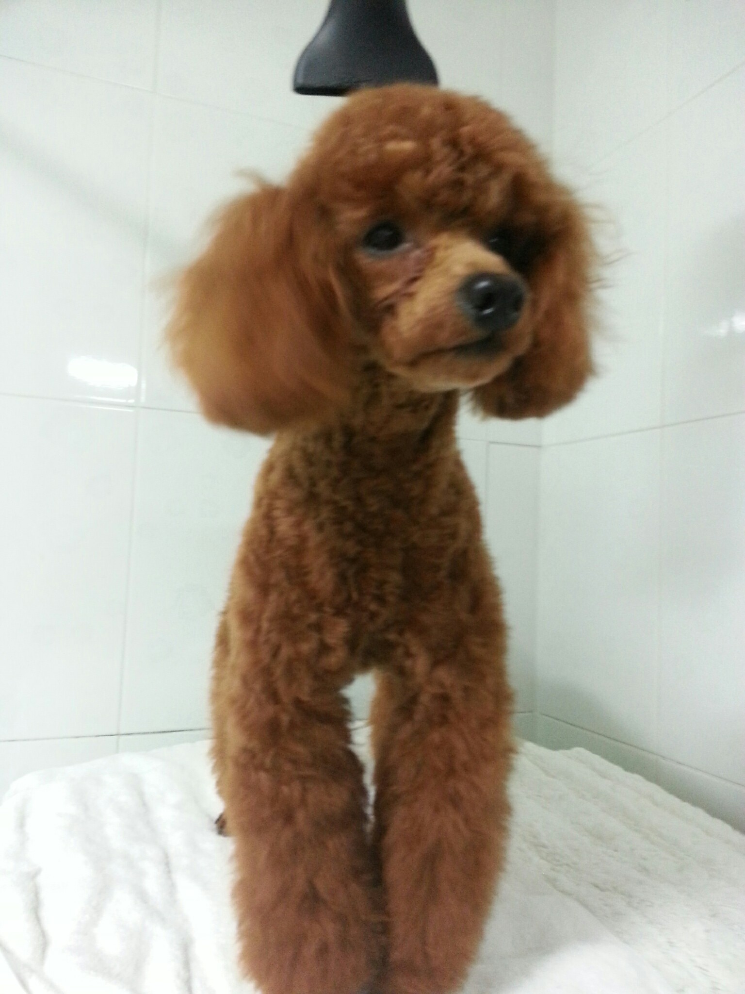 밤색이네요^^전블랙푸들..이궁~미용도 예쁘게..여긴 촌동네라 엉터리..^^어린이와함께 예쁜추억 만드는 오늘 되세요