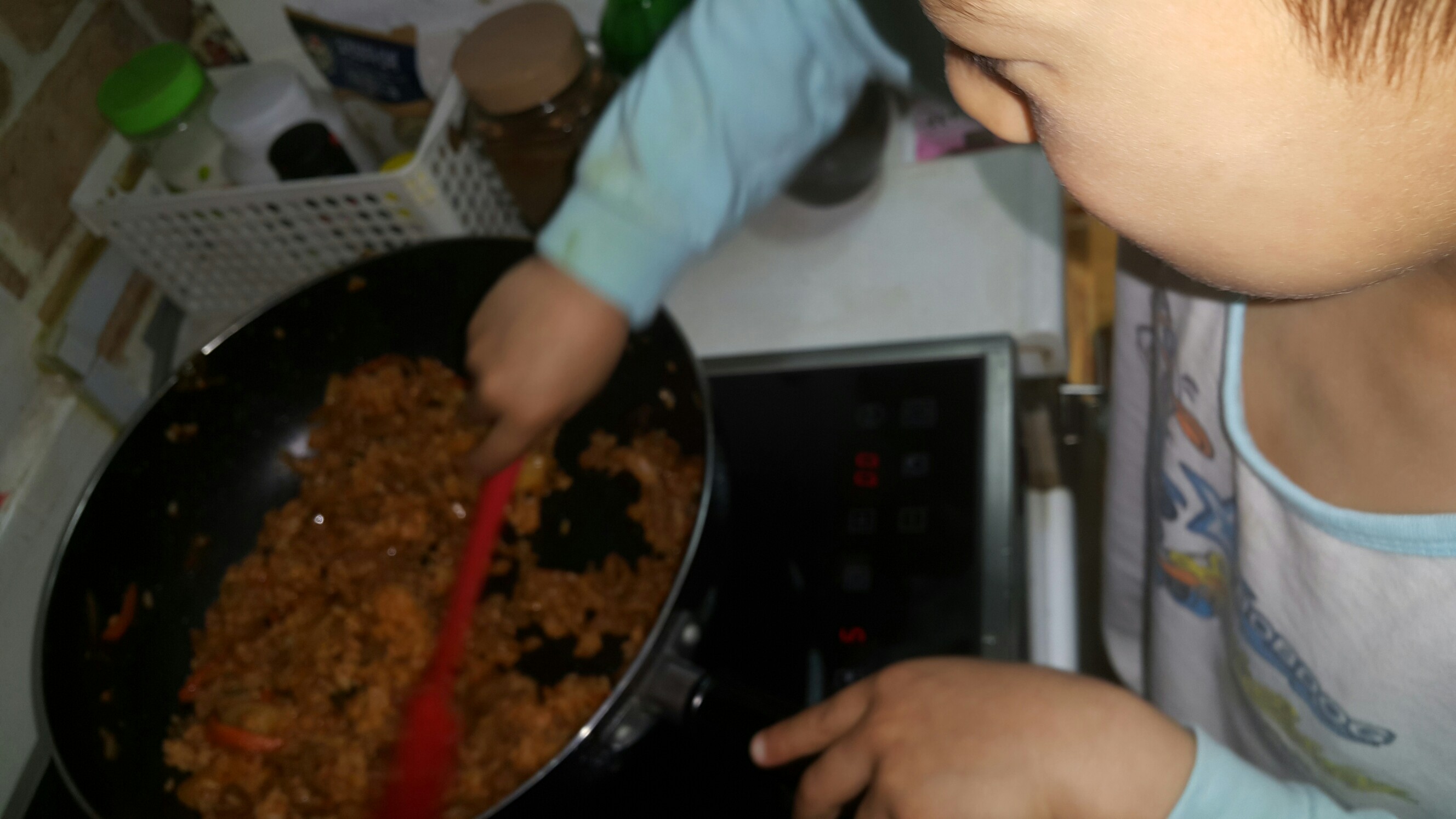 내가 타지않게 잘 뒤적뒤적하라고 했더니 양손으로 하면서 나잘하지용~하드라공~시언표 볶음밥♥