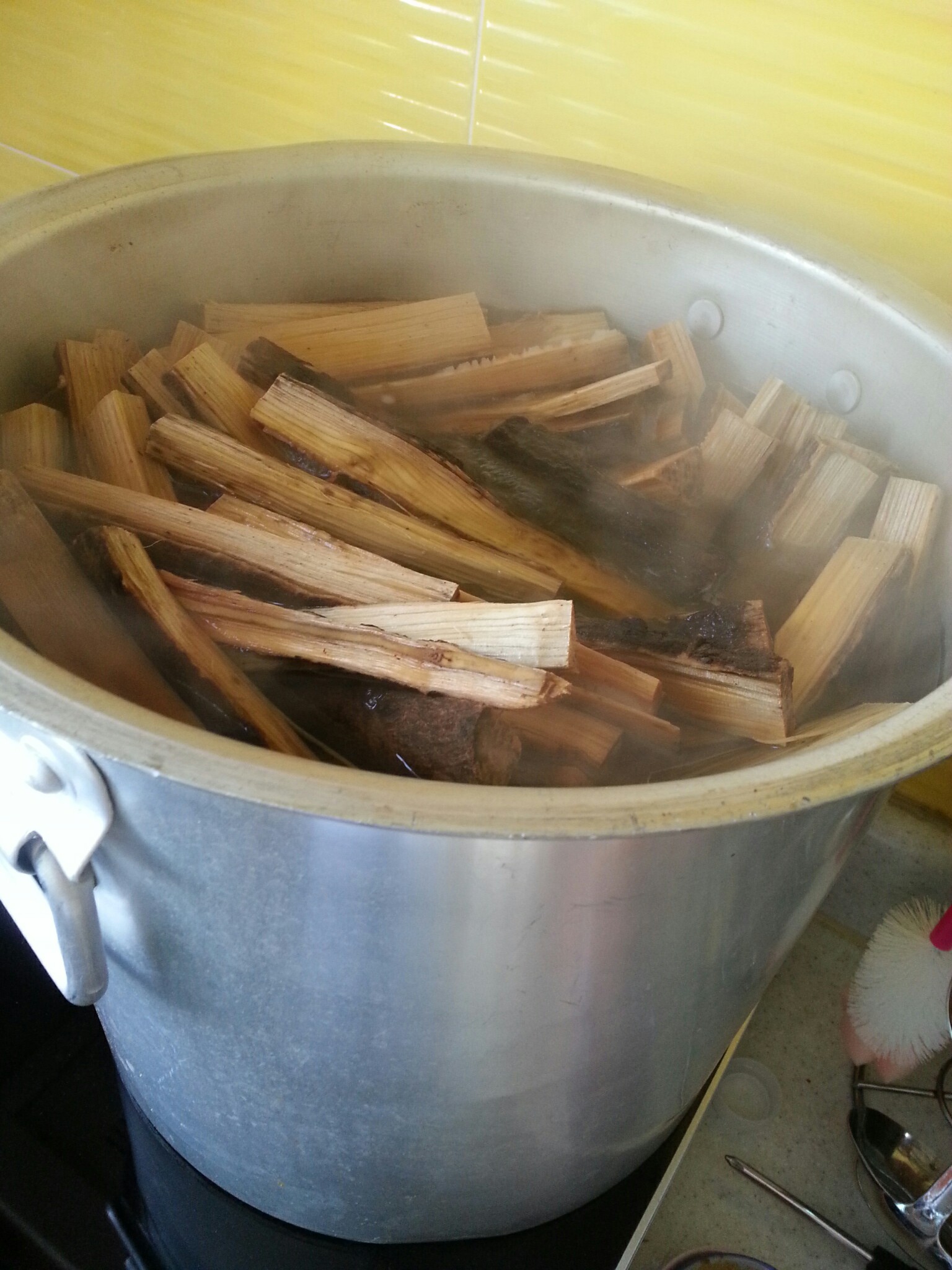 들통에는 엄나무가 6시간째 푹푹 고아지고 있구요~