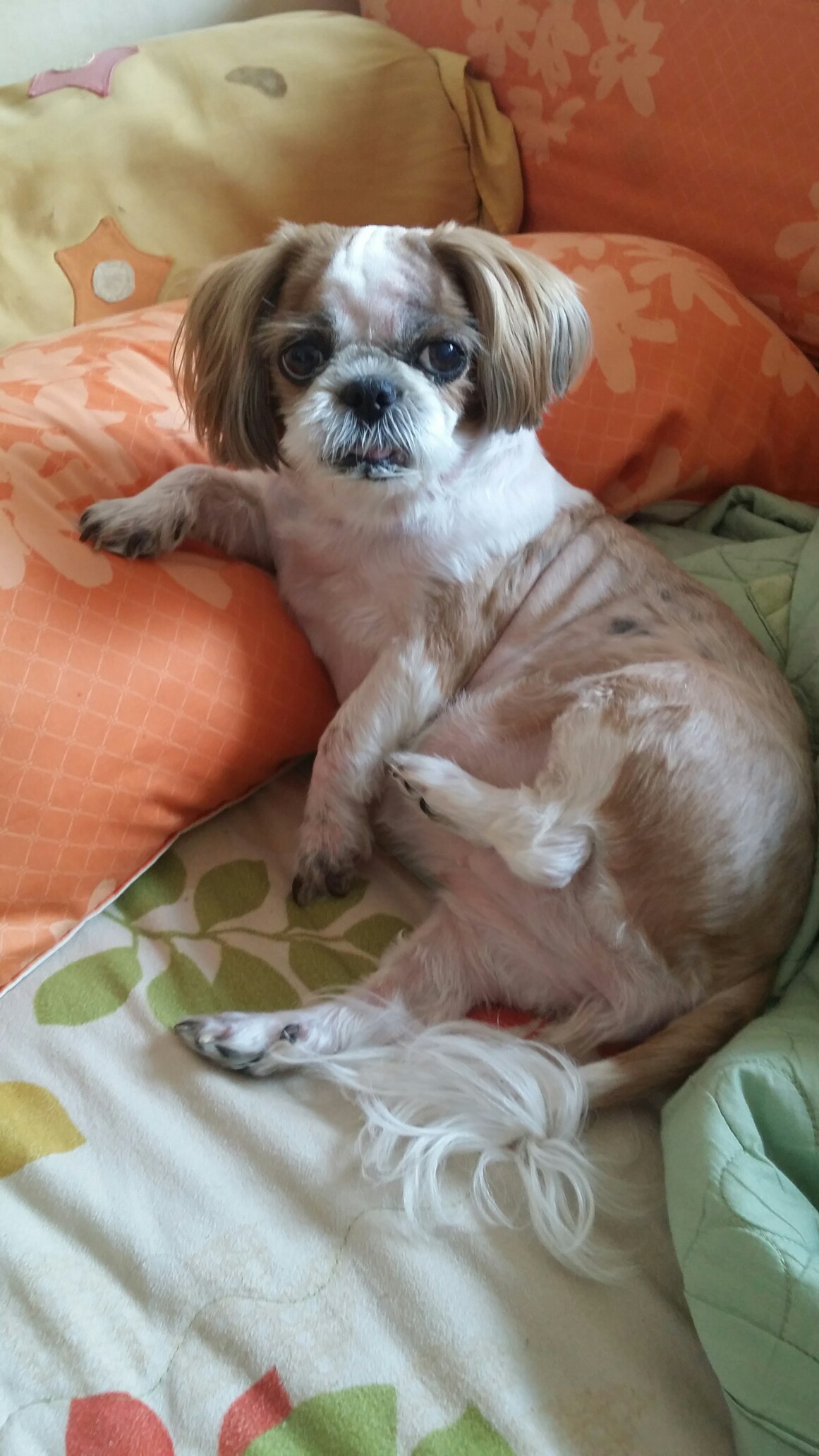 저희집13살몽몽이별이씨예요~강아지키우는분들이많이계신거같던데..저도딸램자랑하고싶어서올려보아요^^;; 나이가많아..아파서털을싹밀어서~못난이가되었지만..제눈엔사랑스럽기만하네요♡