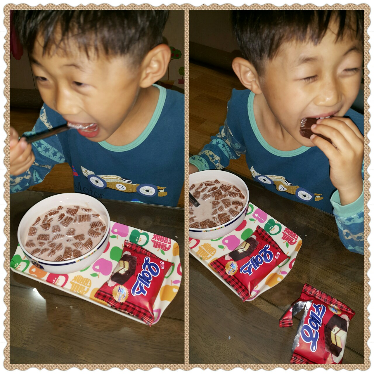 일곱살때부터 했옹~~^^~맛있데 우유까지 다먹고 오예스 두개 다먹었옹...^^~