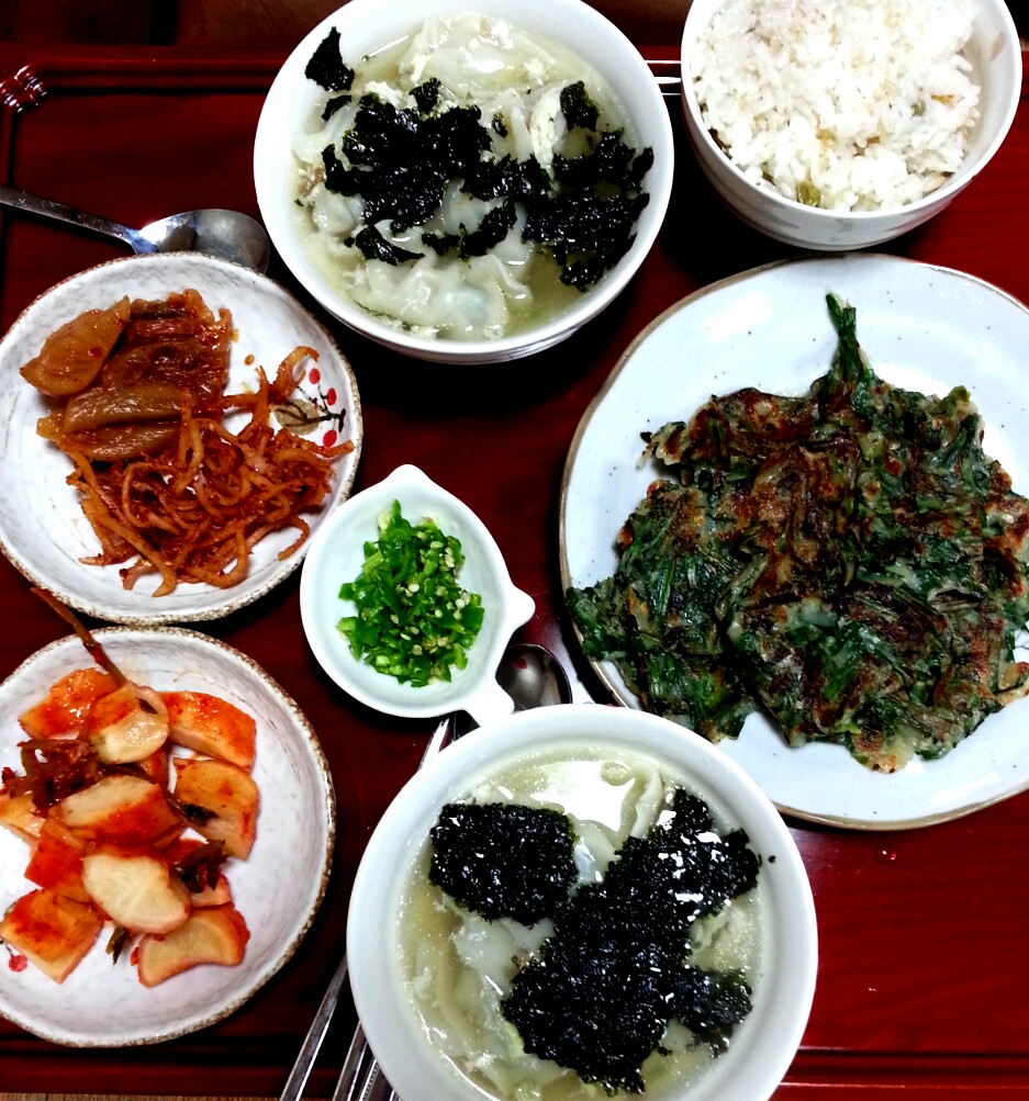 대충 만두넣고휘리릭 만두국에~부추전하나부쳐서