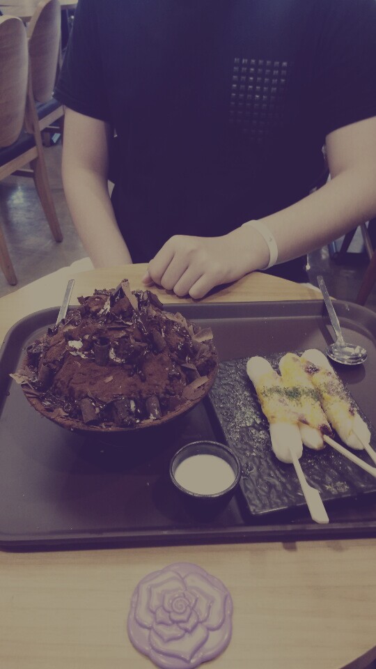 오늘 여친이랑 설빙가서 리얼 초코빙수랑 치즈가래떡을 먹었습니다 리얼초코빙수 한번 먹어보세요 진짜 엄청 달콤하고 맛있고 치즈가래떡은 안에 치즈가 많아서 좋아요 한번 먹어보세요