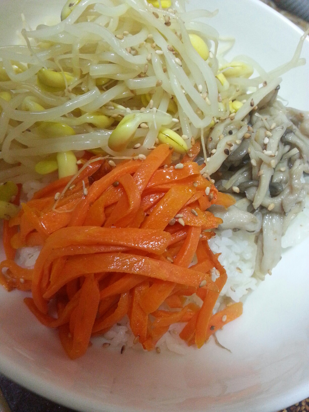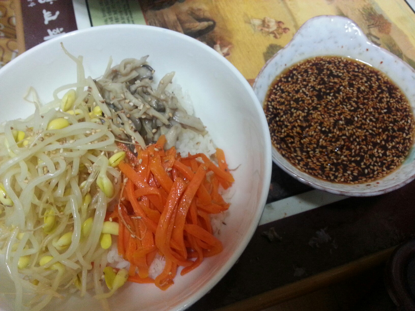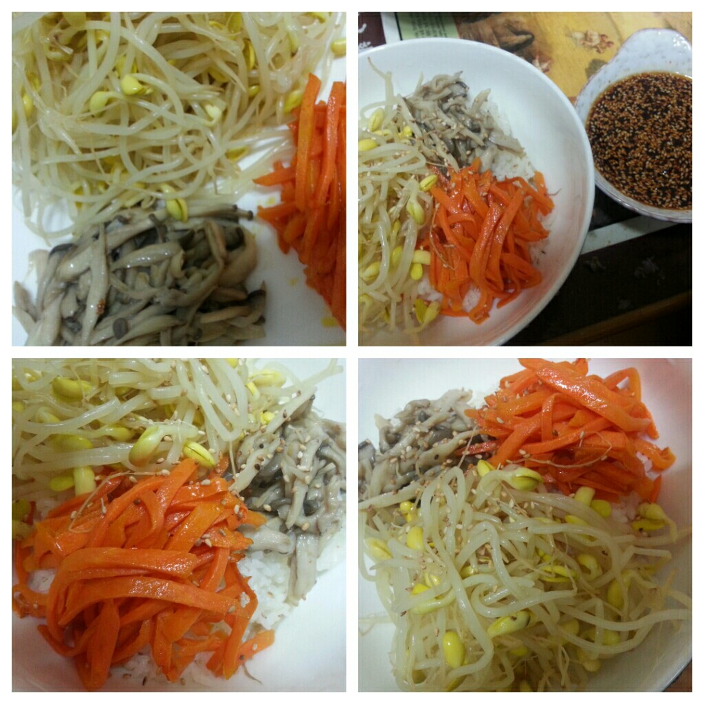 맛난 비빔밥을두고 투정~ 숟가락으로 머리 때려여 ㅎㅎ