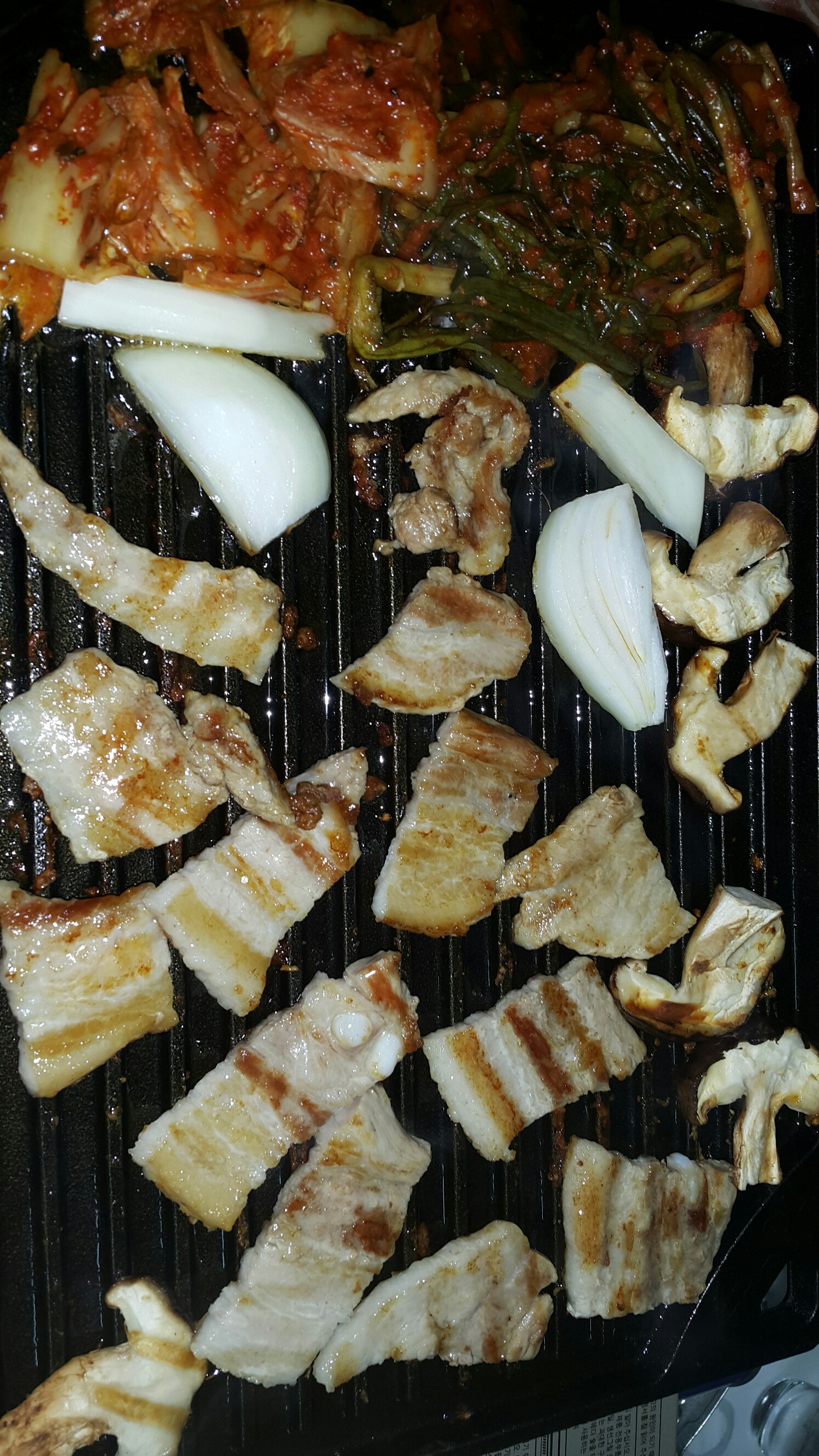 나야네 저녁은 그릴에 겹살이 꾸워 먹어용...