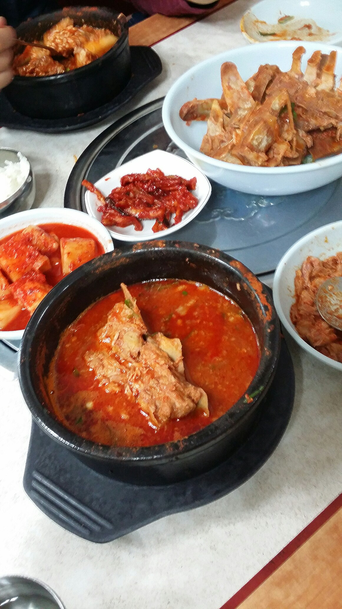 등뼈해장국으로..하루시작합니다~장기휴가동안..너무띵가띵가했는지~이틀출근했는데..몸이녹초가되었다는요^^;:메르스진정되서인지..가게는왜케바쁜지..저아침5시넘어서퇴근하고ㅜㅜ해장국먹고뻗으려고요~참고로..제가지저분하게먹은게아니라~손님이많아서인지..후딱주셨는데~뚝배기에국물다튀고..난리네요~^^;; 오늘도좋은하루보내세요~!!