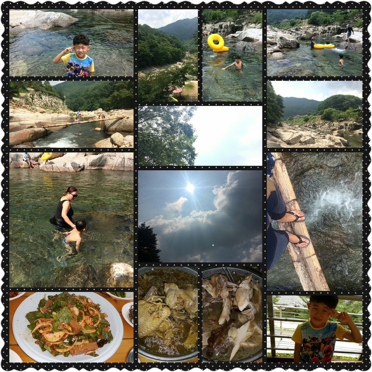 지리산 계곡가서 토종닭백숙+옻닭+도토리묵 무침 요로고롬 먹고 물에서 아주 쒼나게 놀고 왔어용~^^♥