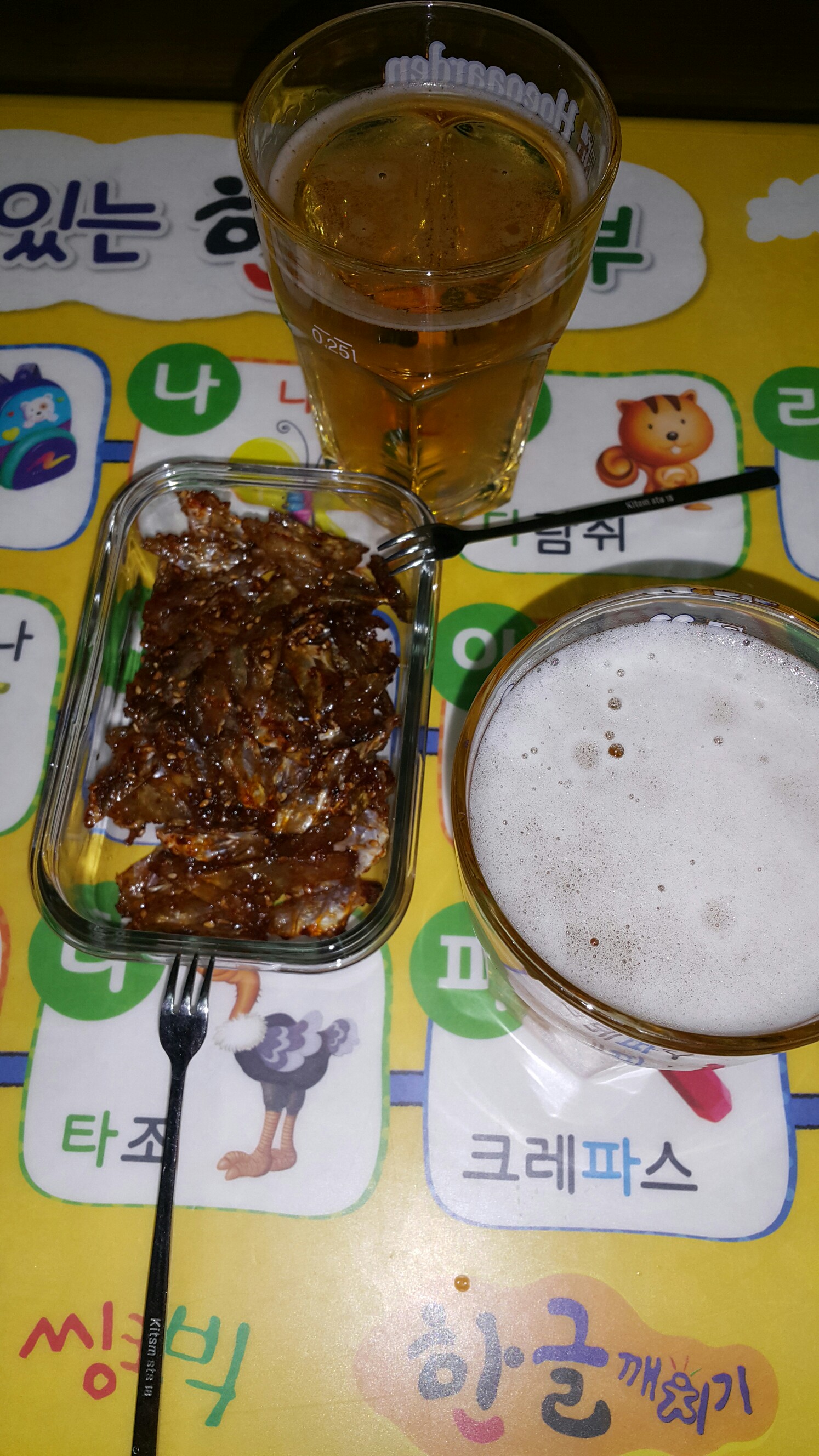 아까 만들어놓은 쥐포조림에 맥주한잔요~**~