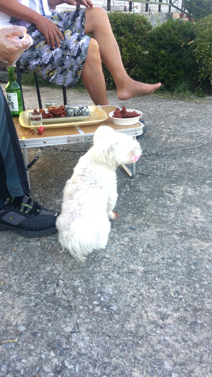 아버님 친구분와서 드리고 아지는저러고 있어요