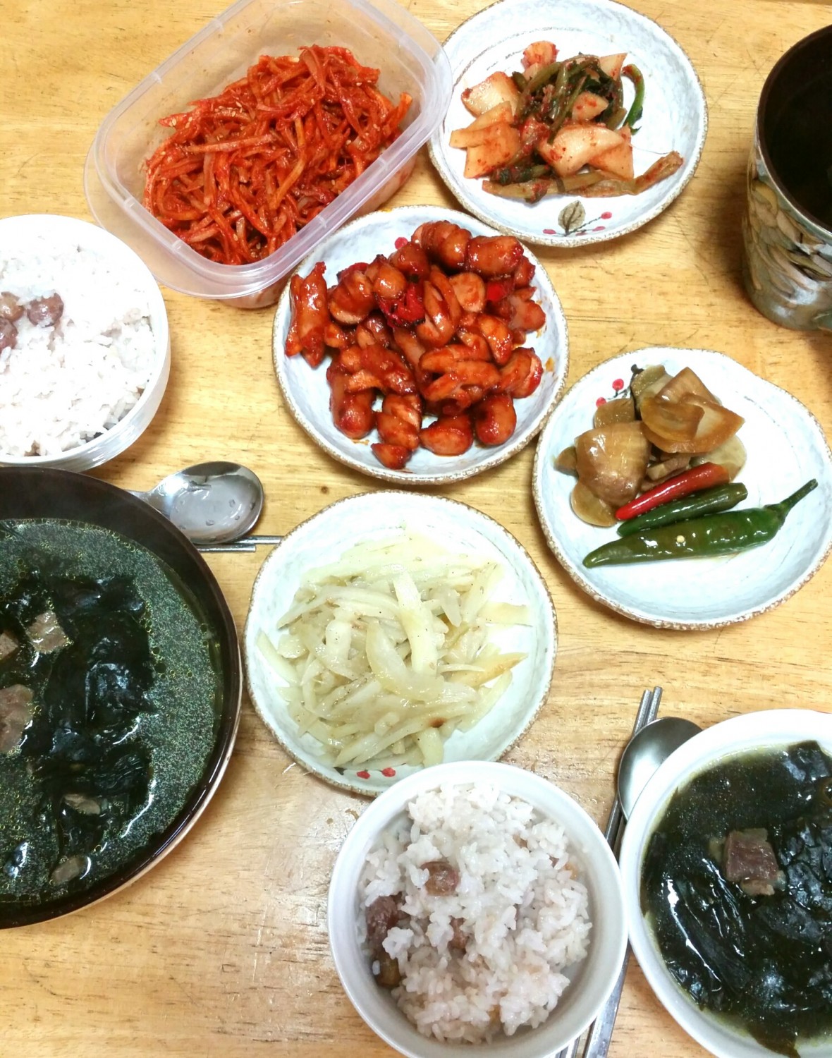 앙뇽하셔요^^꿍이네저녁은 소고기멱국에 감자볶음해서