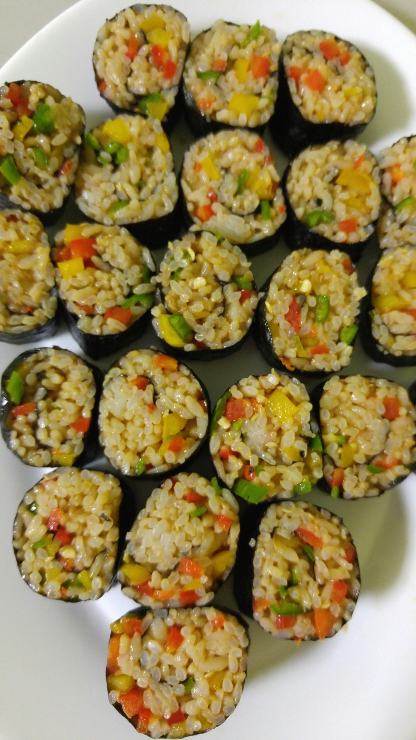 야채다져서 돌돌김밥 말아 간단히 저녁먹어용. . 비가 계속 내리네용. . 맛저들하시공 즐건 저녁시간들 보내세요~~~^^