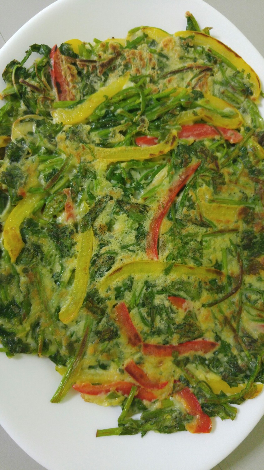 청국장과 같이 먹으려구 미나리.냉이. 파프리카. 청양이도 두개썰어넣구 두장 부쳐봤어요~~ 향도좋구 먹을만 하네요~~^^