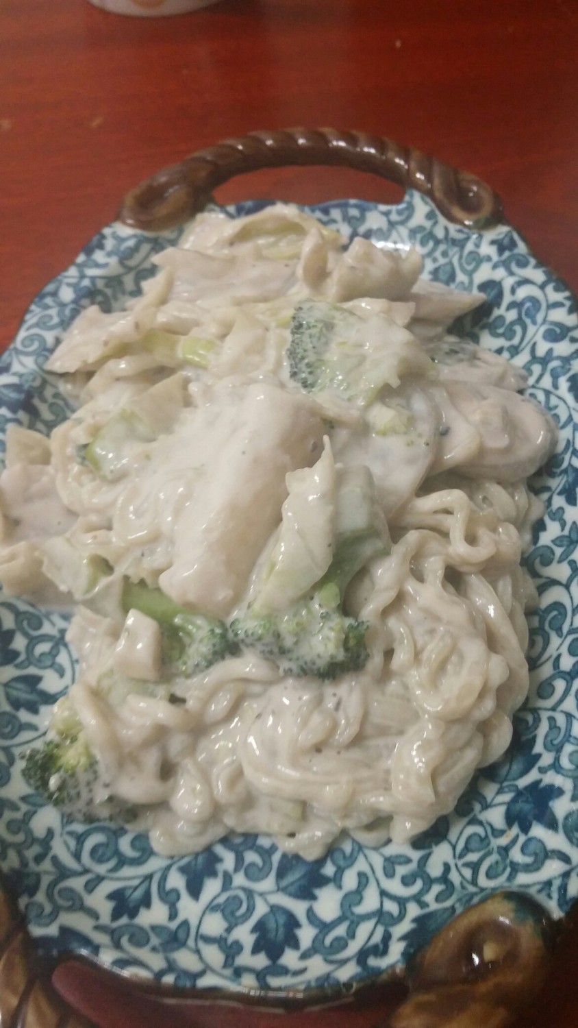 버터에 마늘볶다가. 양배추 브로콜리 넣고 블루베리 넣고간우유 넣고 끓이다가 소금후추간하시고. 삶아놓은 면사리투하 . 약한불에 치즈 네장넣고 적당히 졸임