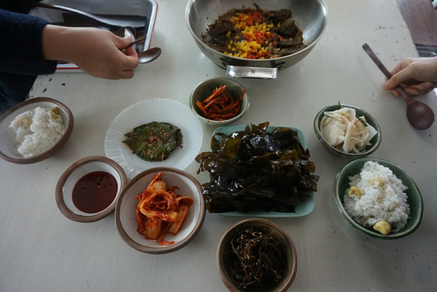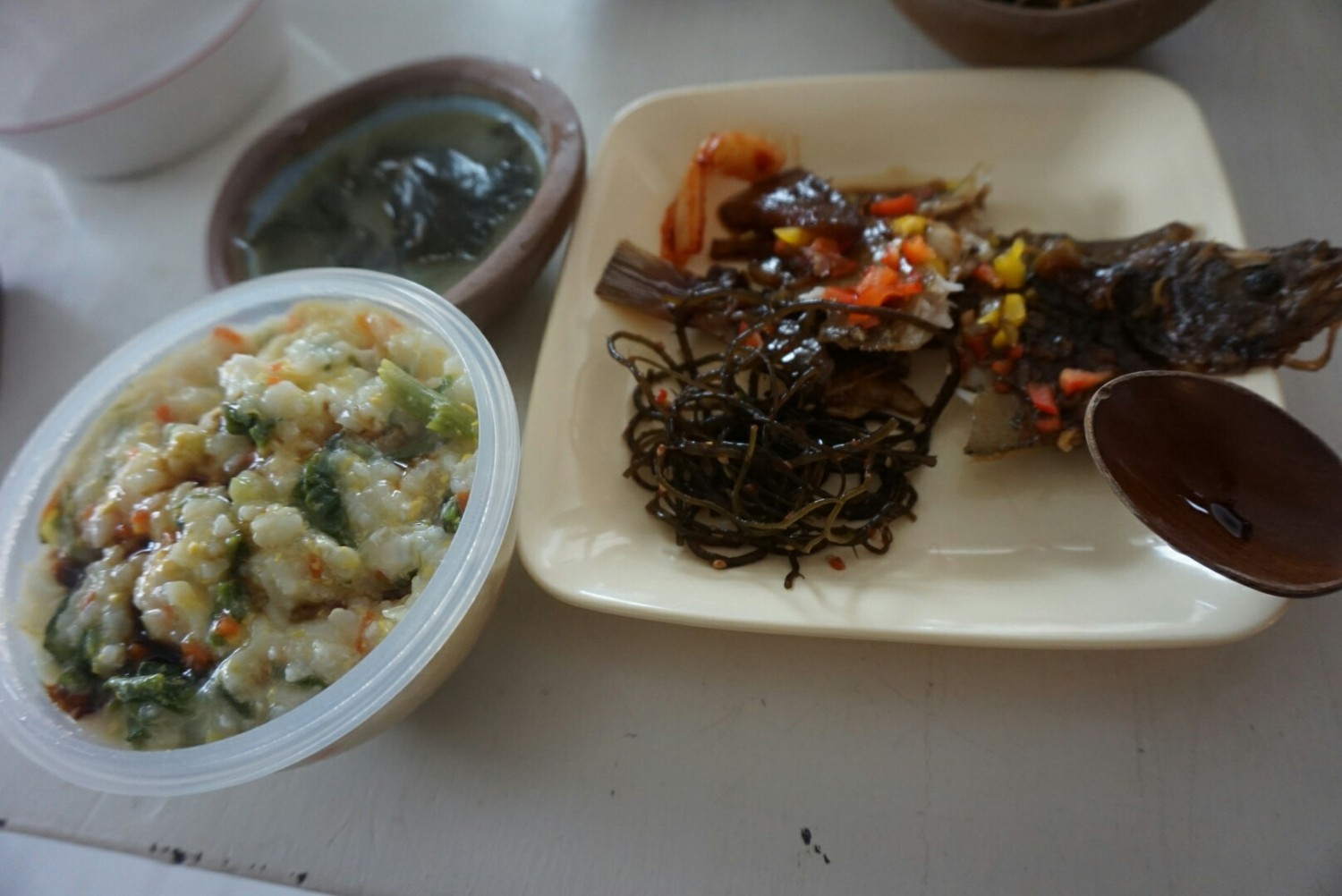난 내가 집에서 만들어온 시금치야채죽먹고요.