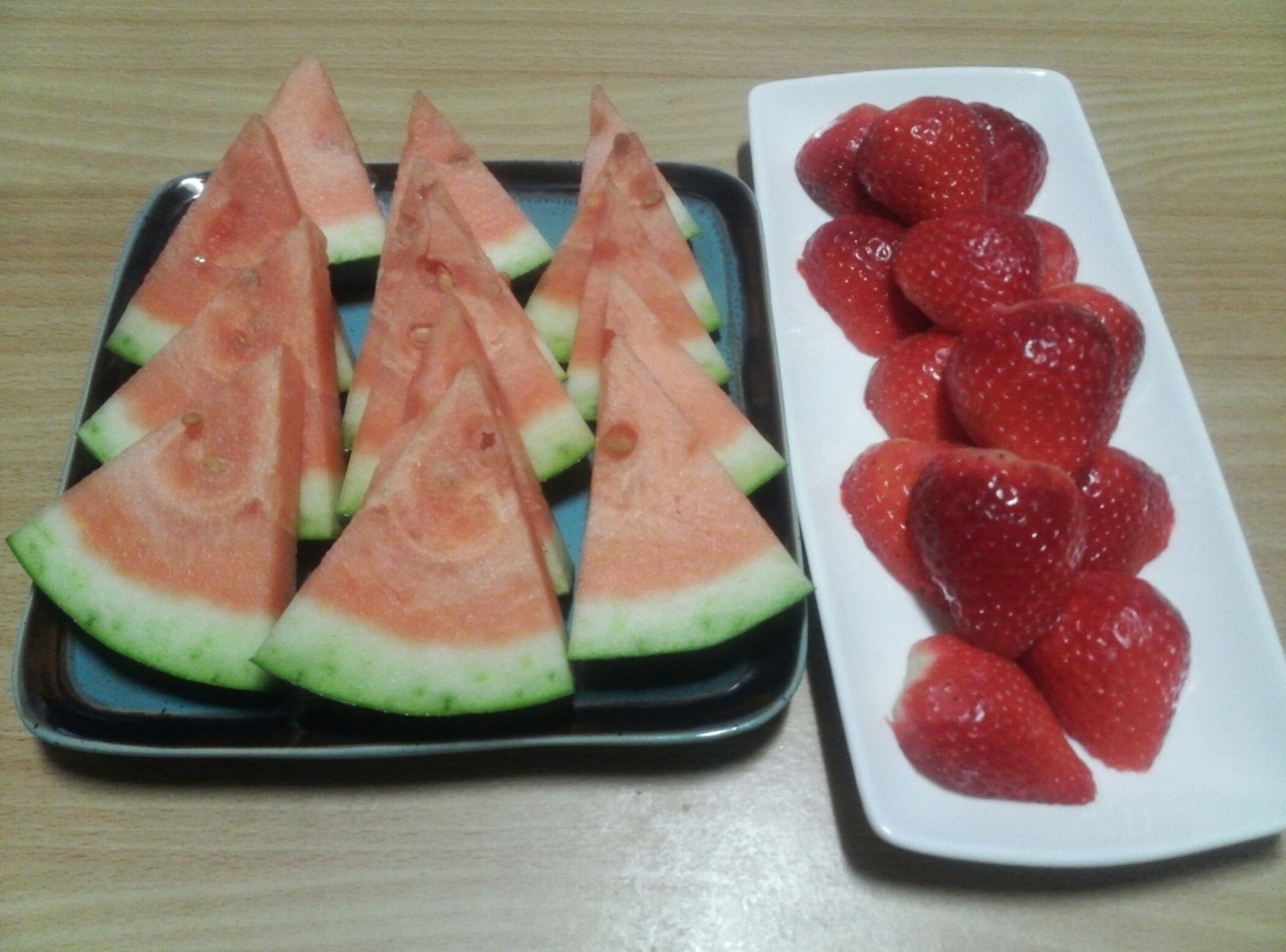 어젯밤 야식으로 먹은 수박과 딸기네용~