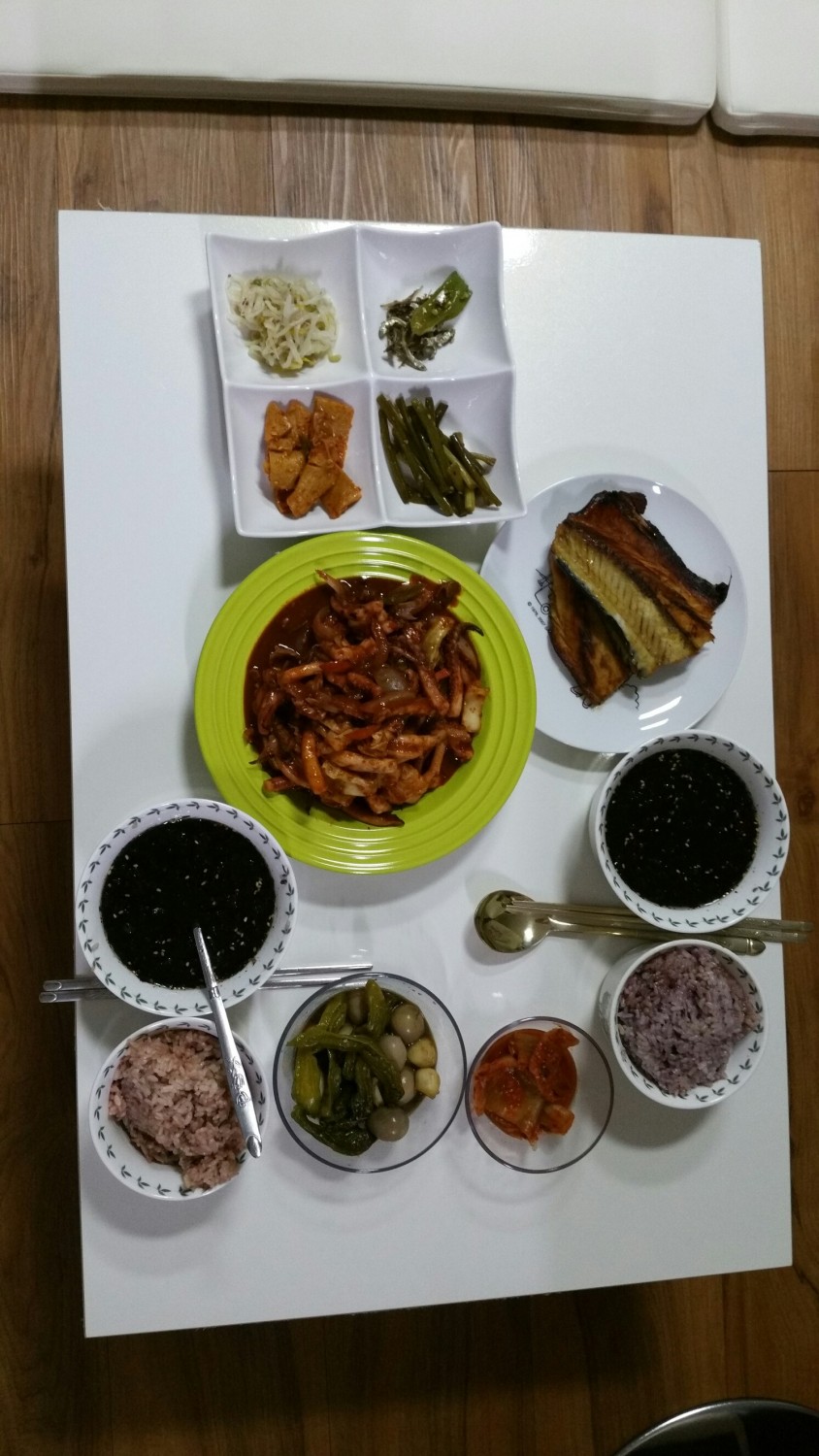 오늘저녁은 오징어뽂음 삼치구이 김냉국 요라고먹어용