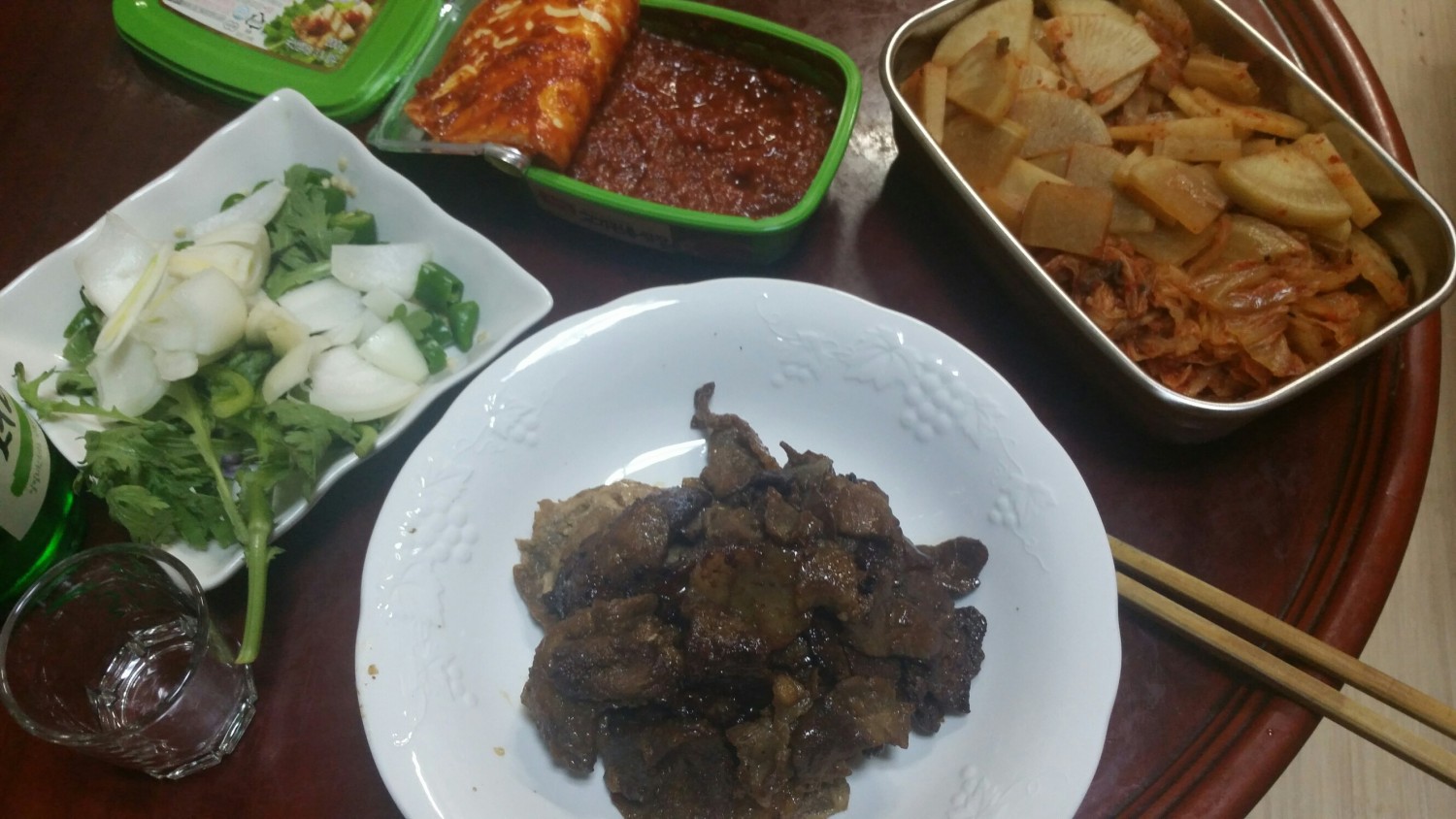 집에서 간단히...돼지갈비와 쇠주..그리고 비빔면ㅎㅎ