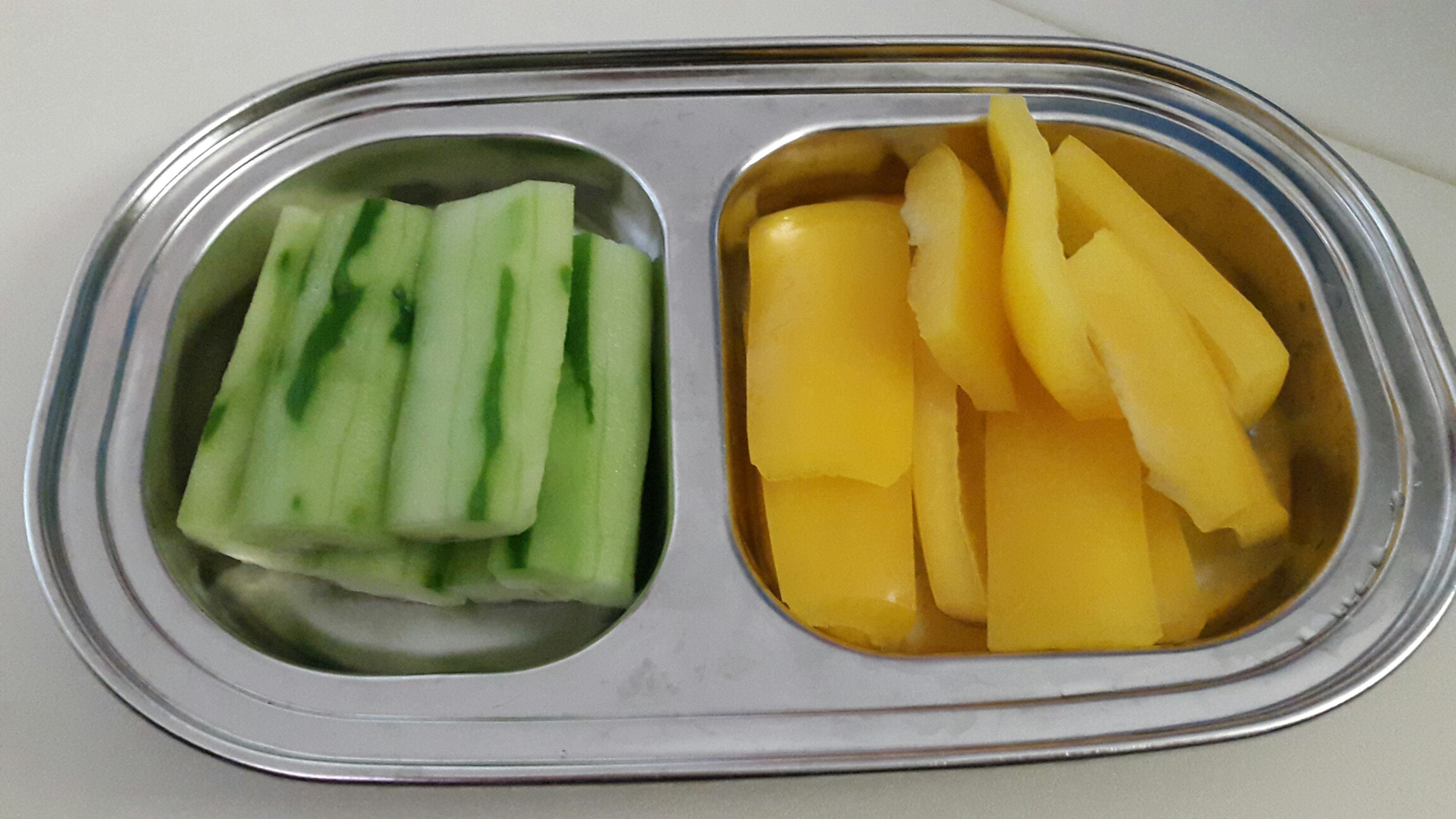 얼집에서 오는길에 쥬스한통 다묵고 집에와서 이따빨하믄서 간식으로 파프리카랑 오이냠냠요