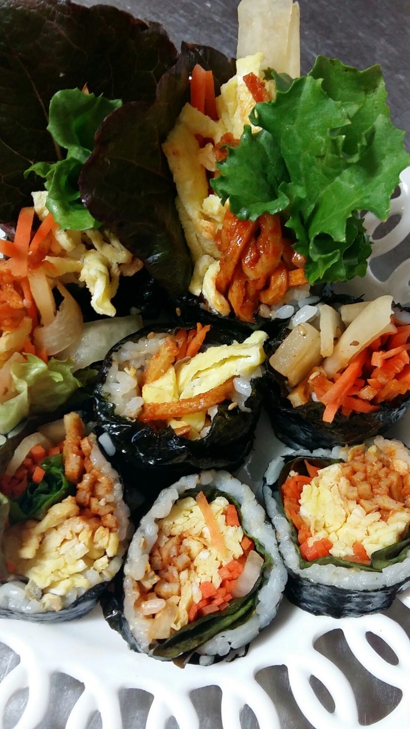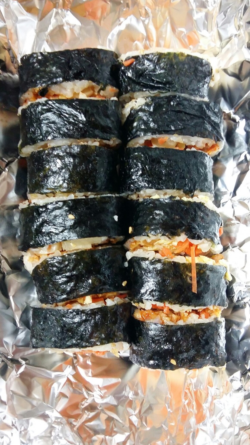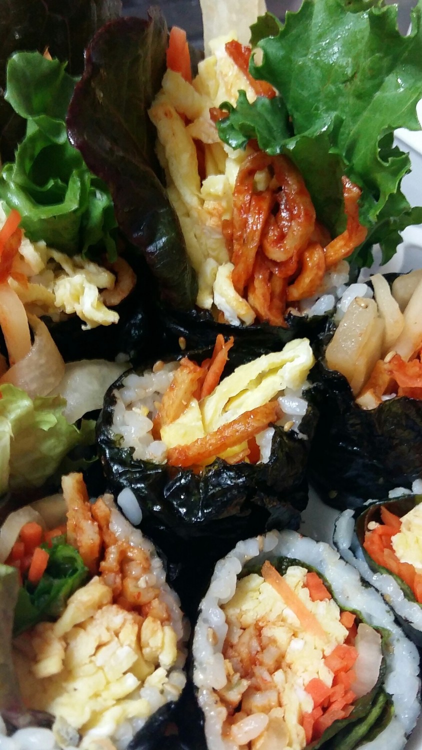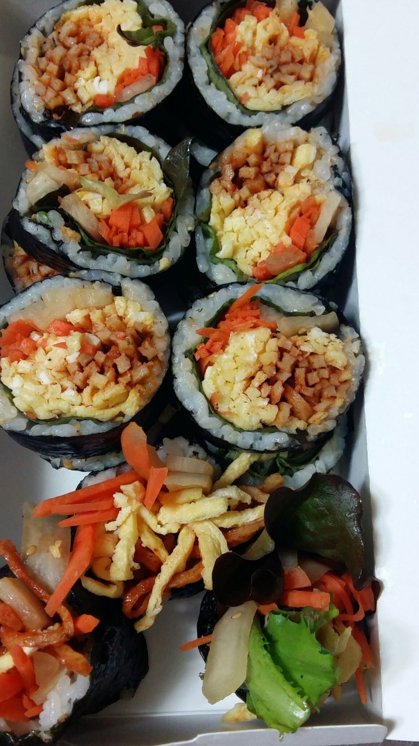 섞밖지 씻어서 참기름하구 깨넣구 무친거 넣었엉ㅋㅋ
