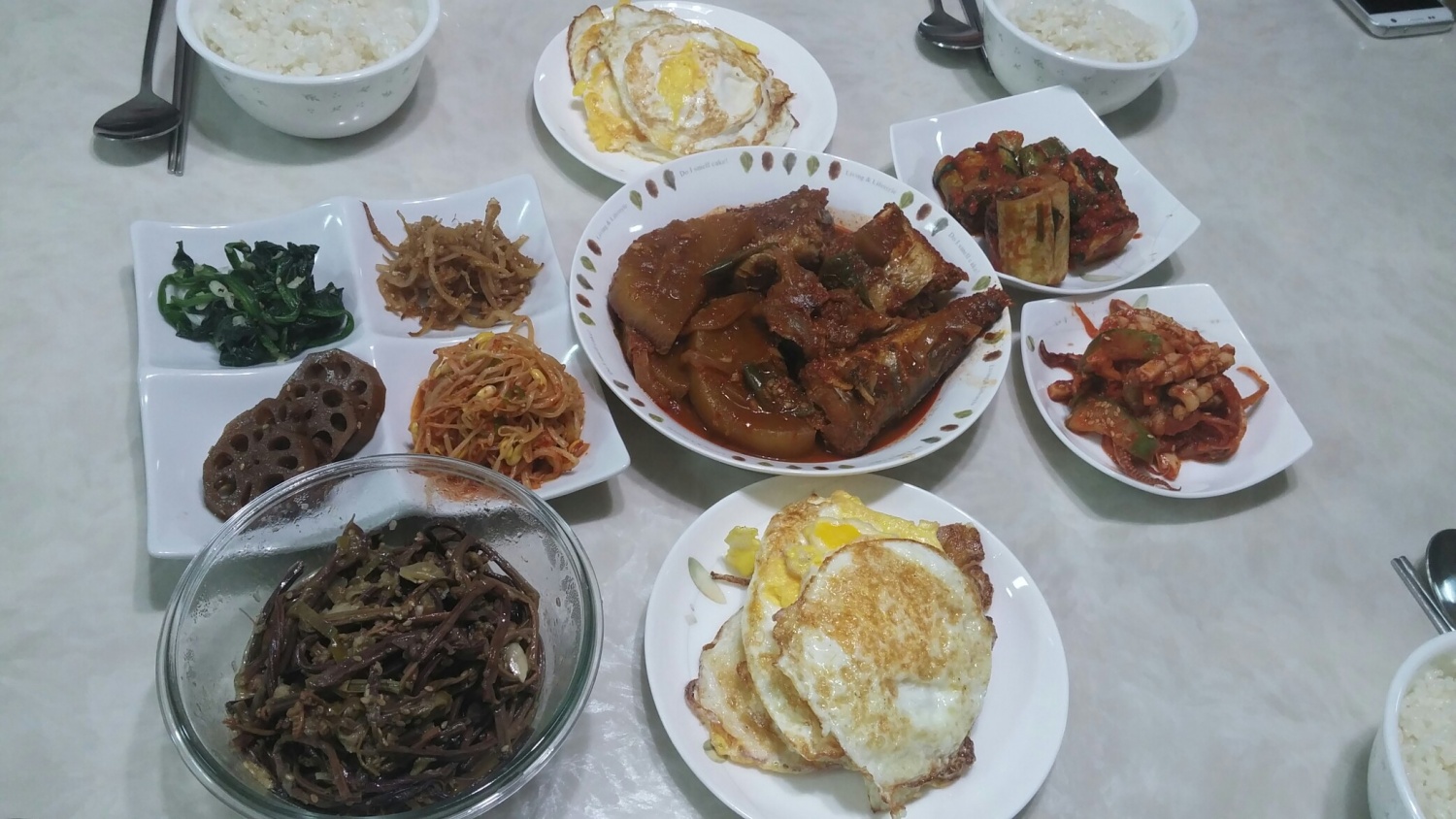 오늘은있는반찬에코다리찜하고오징어도라지초무침..고사리..계란후라이해서저녁먹어여~다들맛저하세여~~