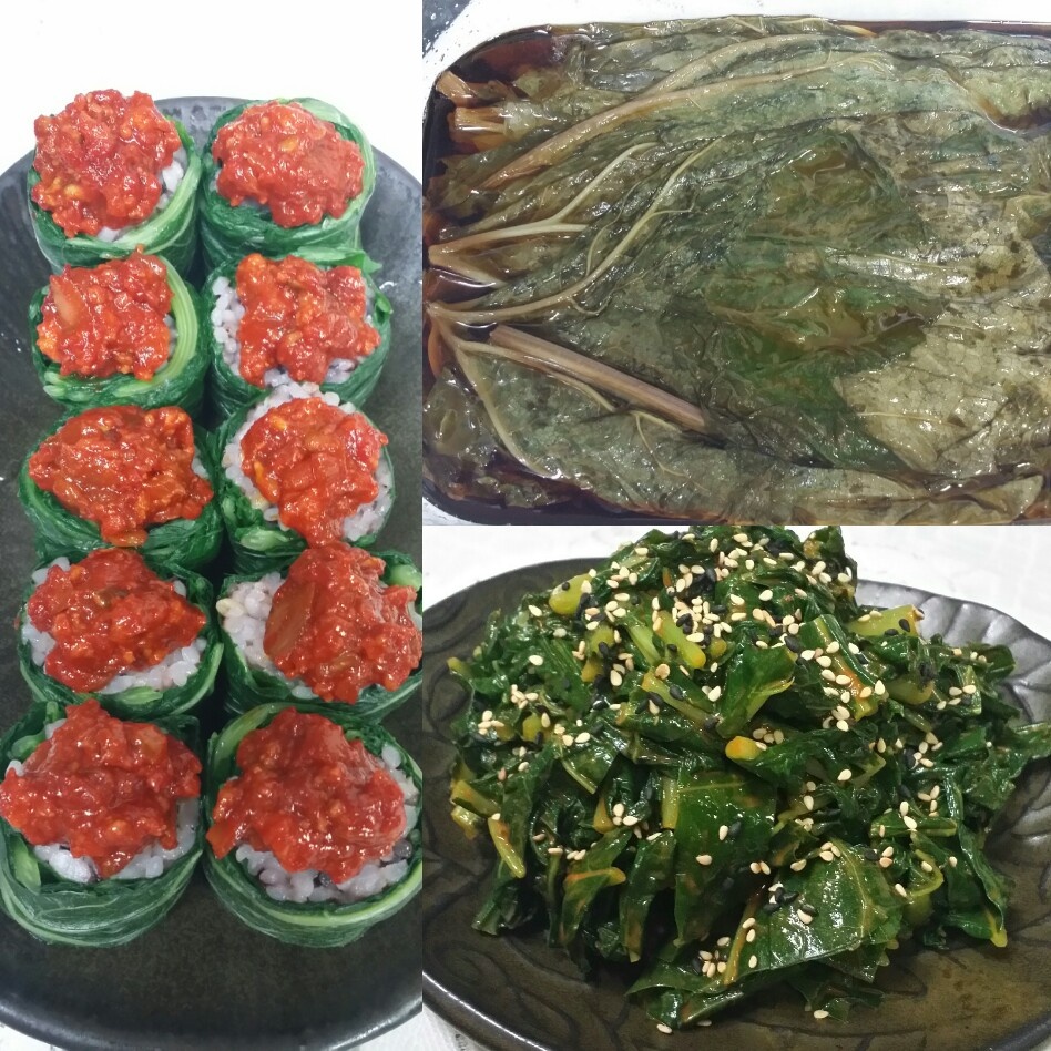 작은것은 장아찌하고 큰잎들은 데쳐서 쌈밥과 고추장무침을 해봤어요...옆지기께서 맛있다하시는디