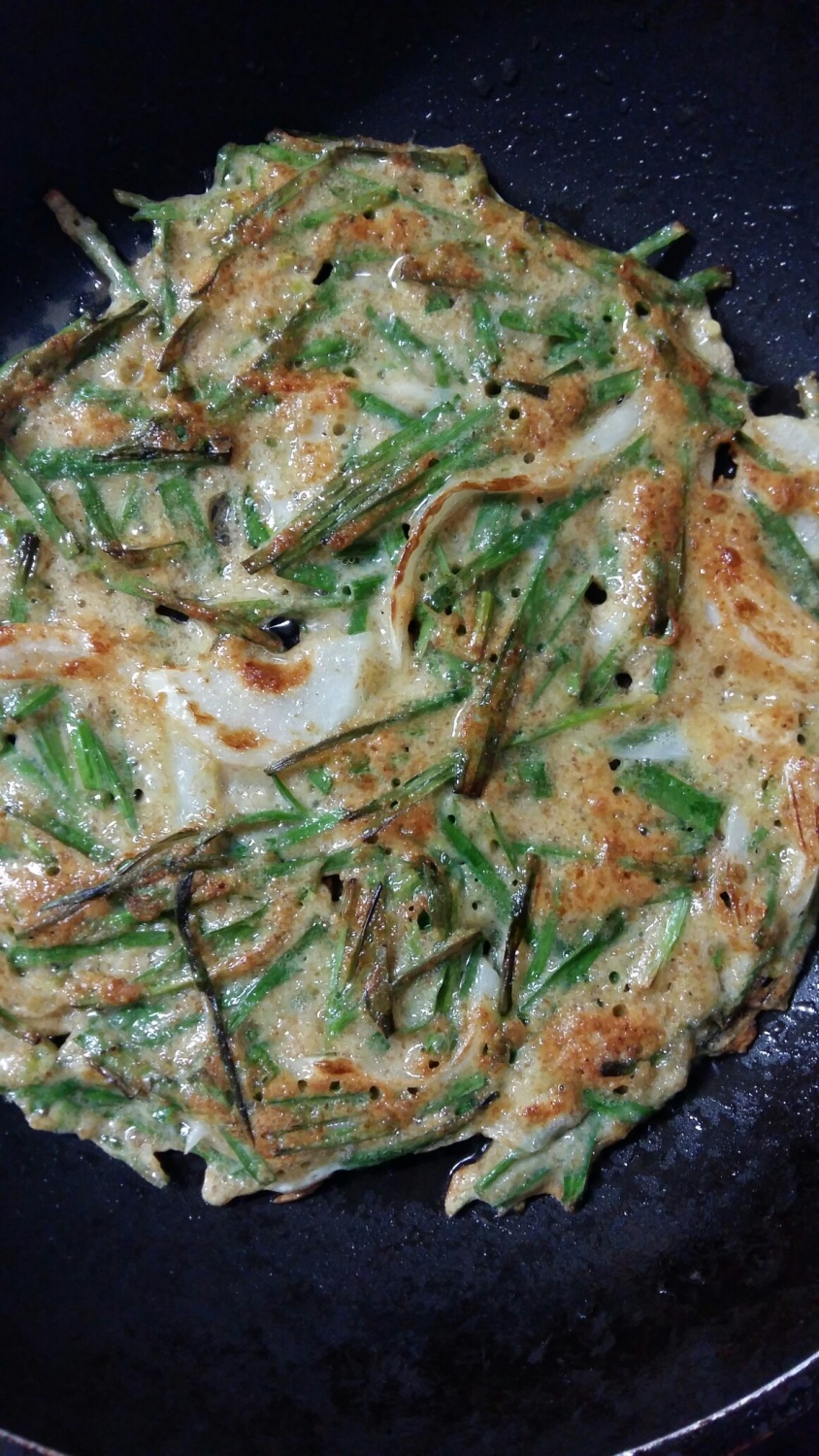 부침개 예술이예요~~^^나도 남은 부추로 낼 구워 먹어야지~~^^