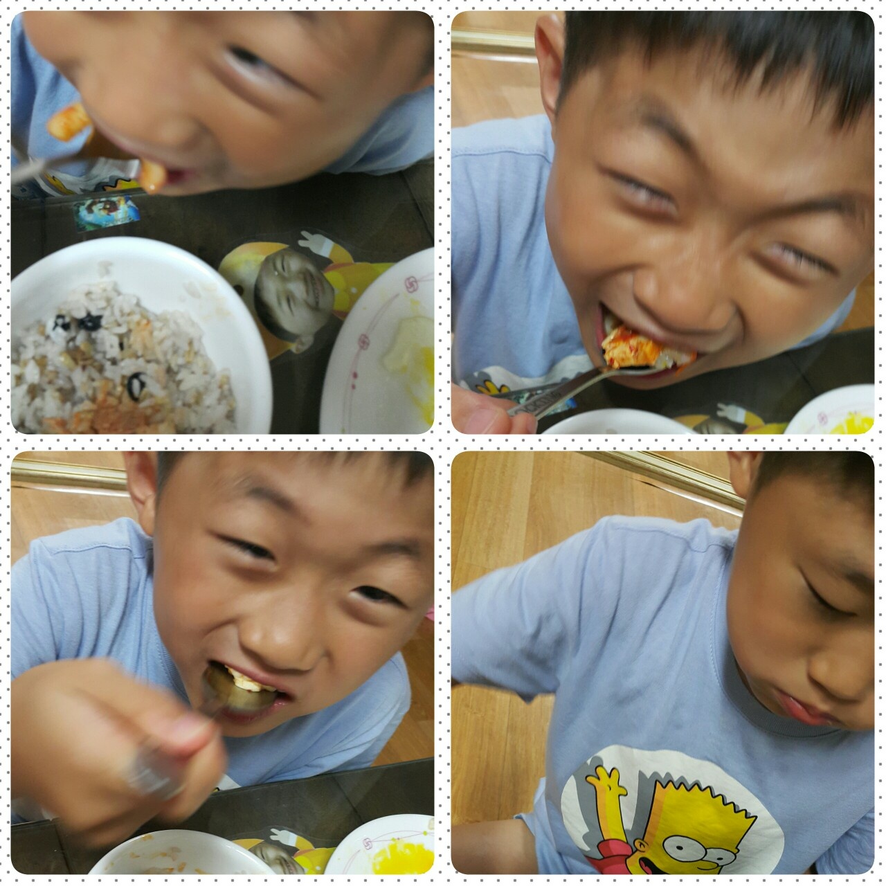 더운데 여러가지반찬에 수고가뭍어납니다 반달눈웃음으로 먹방보여주는 아들사랑스럽습니다