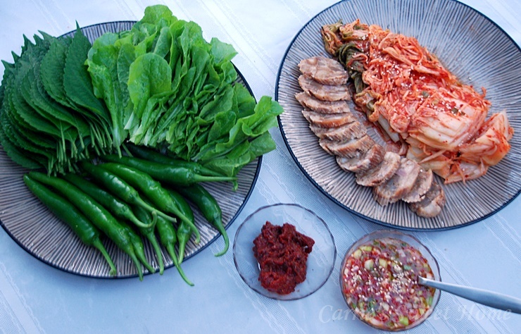 채소한점시 담고,김치썰어 한접시 담고,그 다음 편육잘라 한접시 담으려다 설겆이 귀찮아서 그냥 김치접시에 낑겨 올린 편육되겠습니다^^