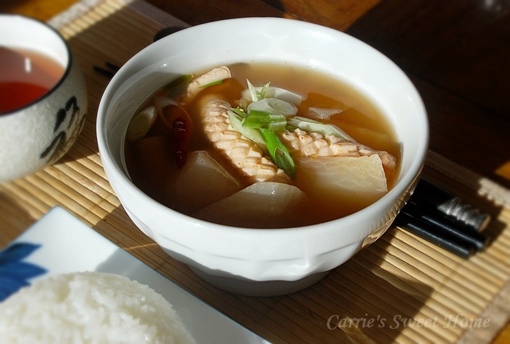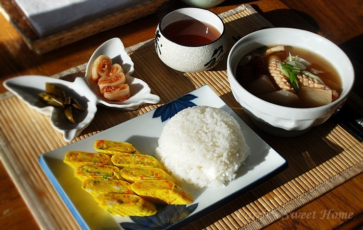 시간에 맞춰 뜨끈하게 오징어국을 끓이고,