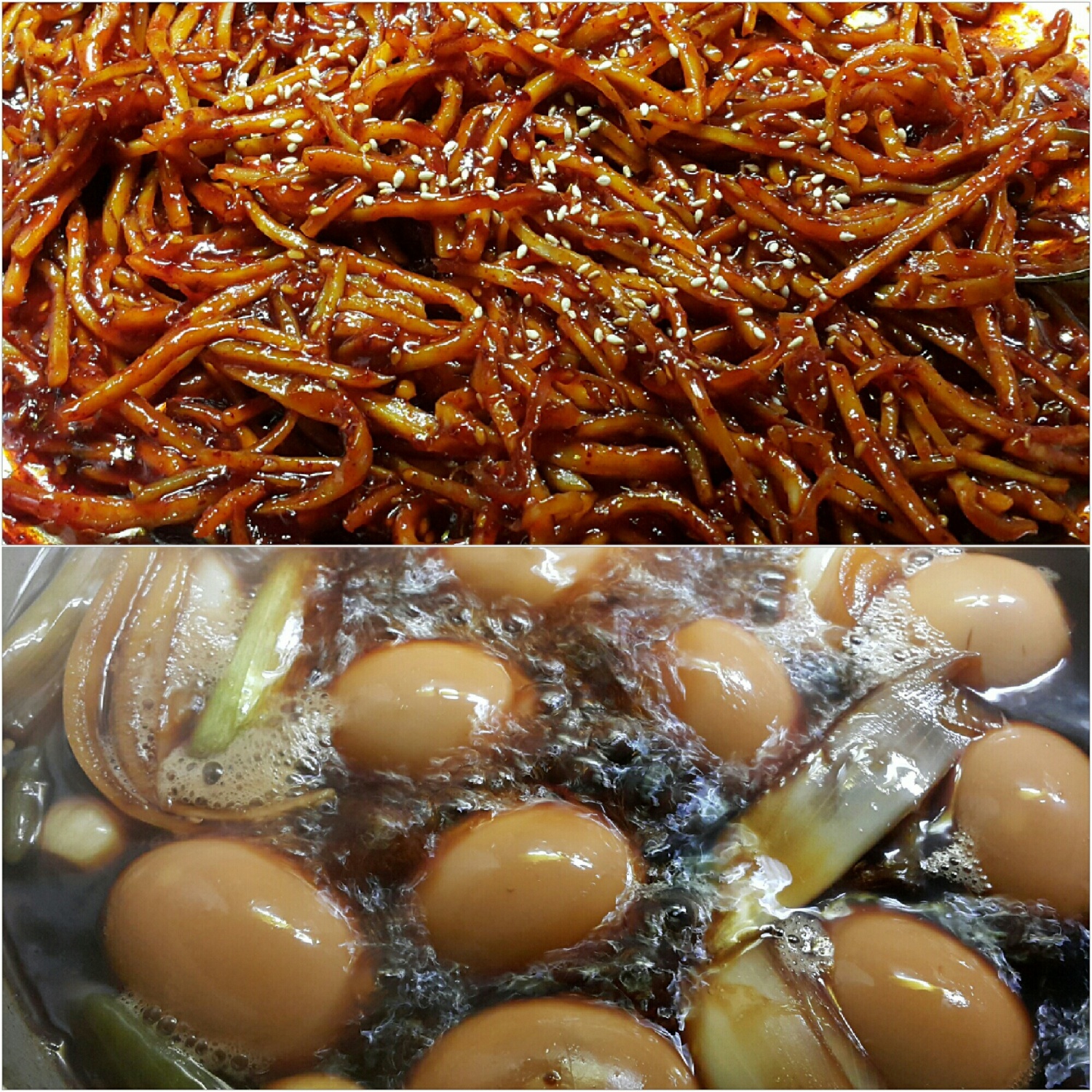 어제가게서 밑반찬 계란장조림.오징어채볶음