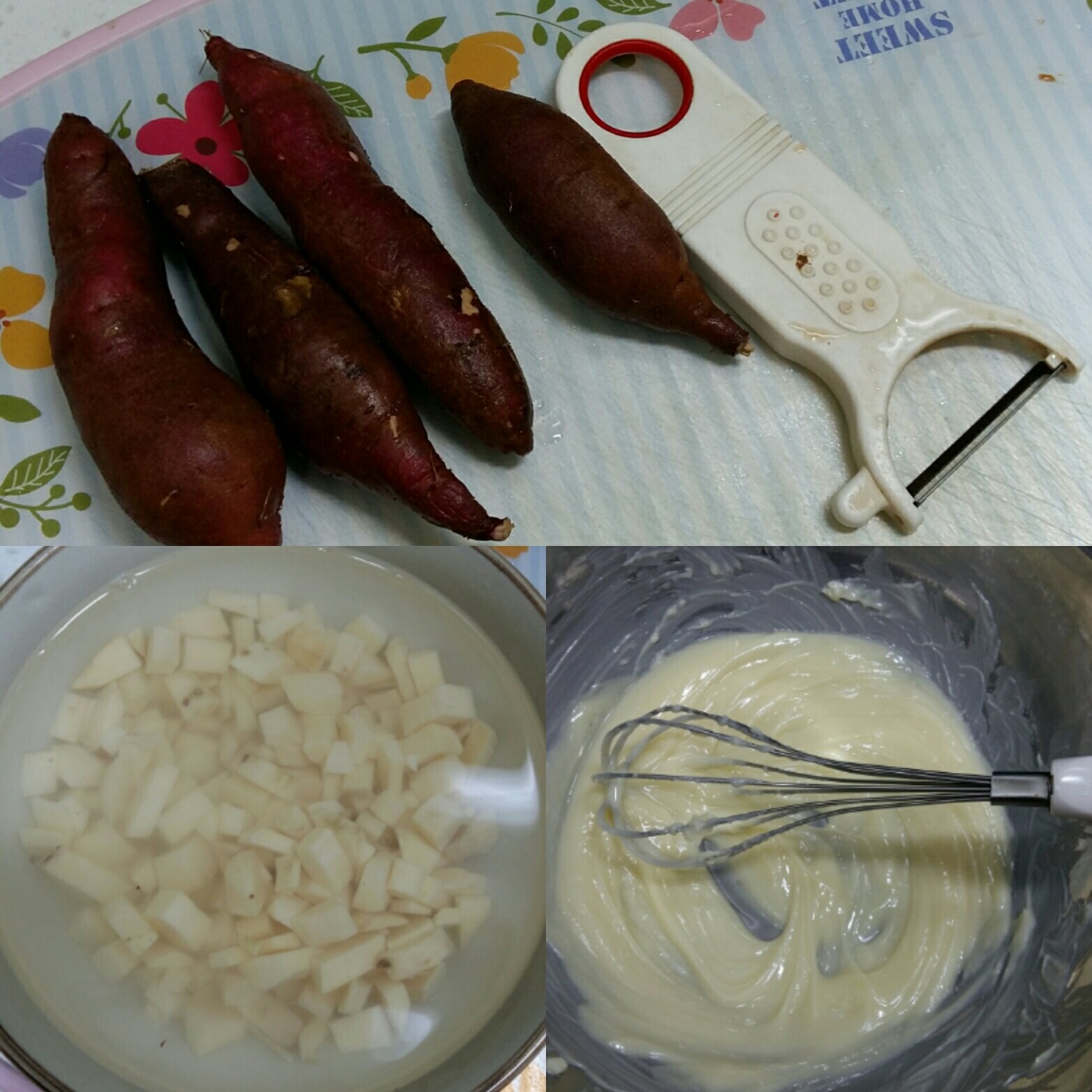 고구마는꺼내서 껍데기를 필러로 벗긴다음